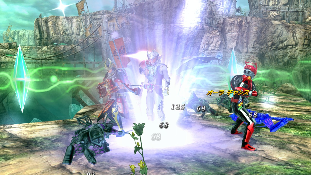 一時的にサポートキャラクターを召喚するライドチップ。1人プレイの場合、3枚のナカマライドチップを使えば、最大4人で敵に立ち向かうことができる!