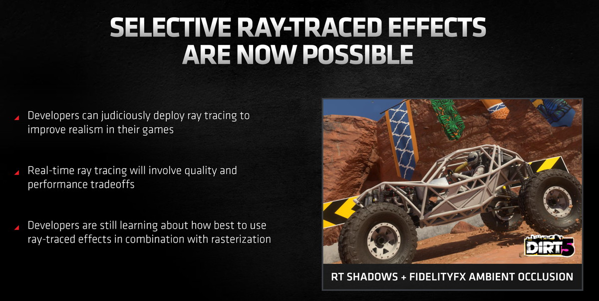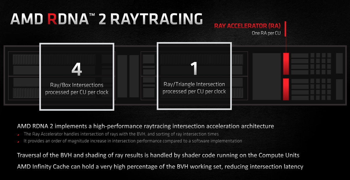 ただAMDにとってRDNA2アーキテクチャのレイトレーシング表現サポートは、第1に次世代コンソールゲーム機とそのソフトウェアデベロッパー、次に3Dレンダリングなどのクリエイターを主要なターゲットとしており、PCゲーミングについてはオマケ程度の意味合いが強い気がします。