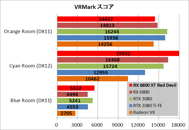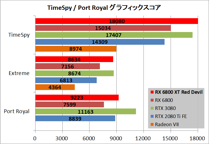「PowerColor Red Devil Radeon RX 6800 XT」はファクトリーOCが施されたモデルなので、傾向が分かり難くなるため、RX 6800 XTのリファレンスモデルを参考に評価すると以下のようになります。