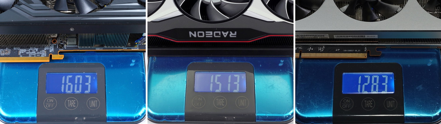 グラフィックボードの重量はAMD Radeon RX 6800 XTが1513g、AMD Radeon VIIが1283g、に対して、PowerColor Red Devil Radeon RX 6800 XTは1603gでした。