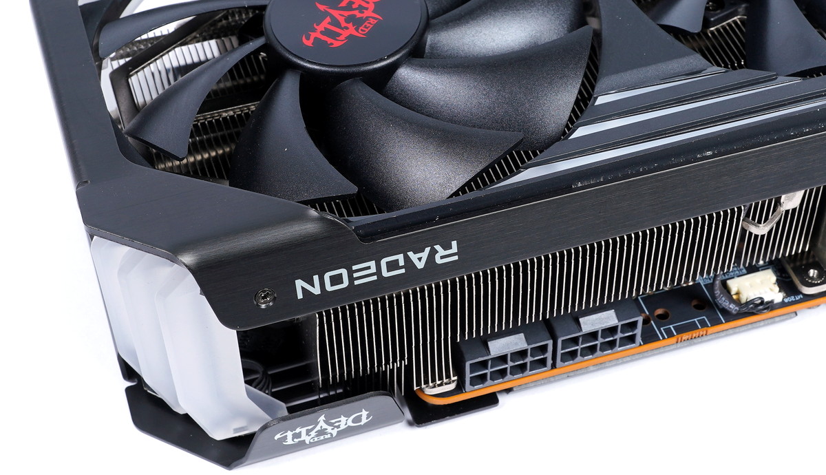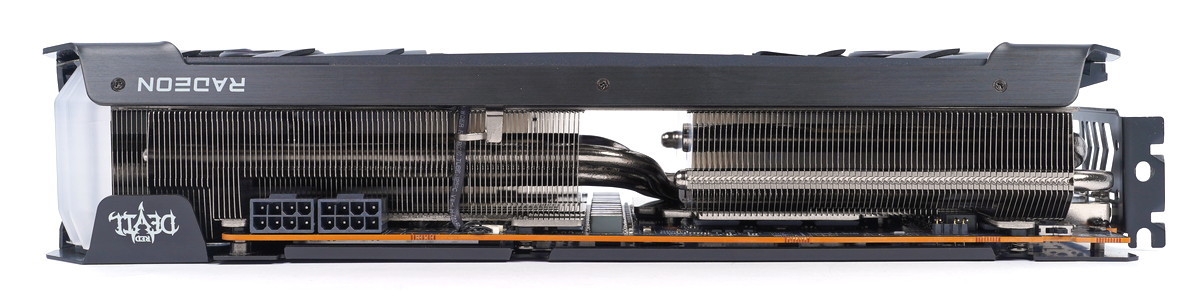 グラフィックボード側面はオリファンモデルにおいてしばしば装飾が施される部分ですが、「PowerColor Red Devil Radeon RX 6800 XT」では放熱ヒートシンクの排気が抜けるようにフィンが全面に出ています。