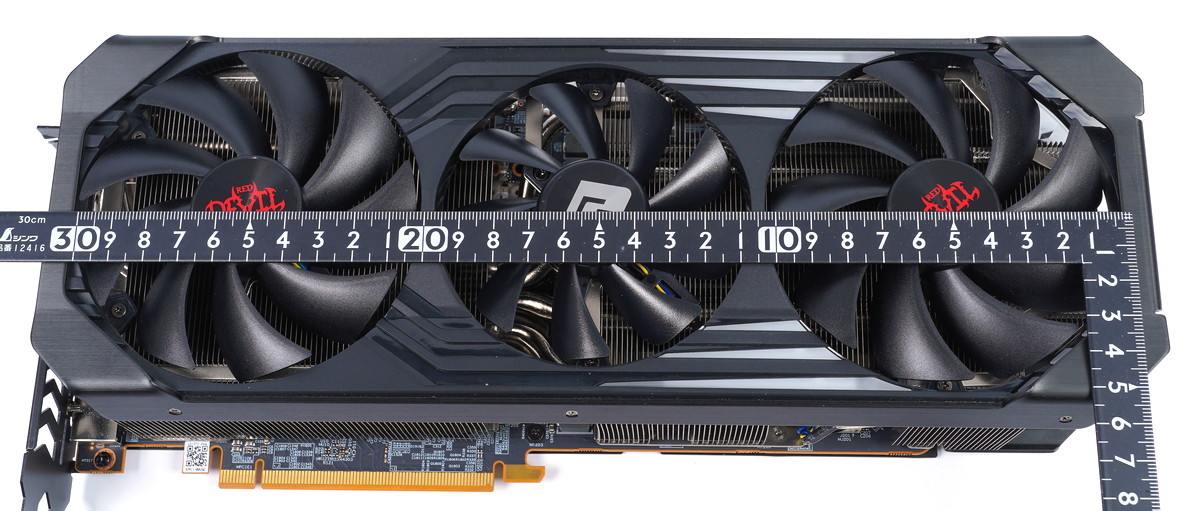 Radeon RX 6800 XTのリファレンスモデルは従来のフルサイズグラフィックボード同様に全長267mm、ハイエンドGPUとしては比較的にコンパクトでしたが、「PowerColor Red Devil Radeon RX 6800 XT」の全長320mmと非常に巨大です。