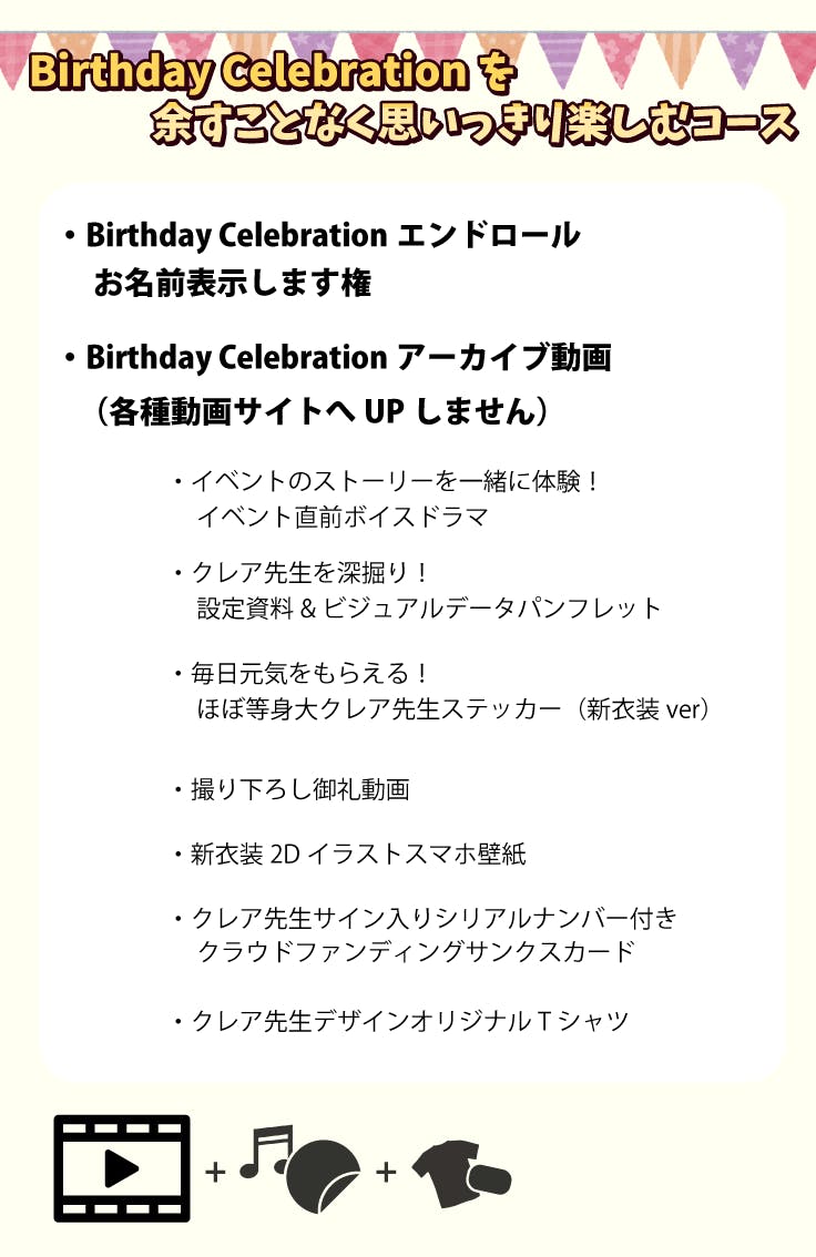 Birthday Celebrationをもっと楽しんでいただくための企画も用意しています。目標金額をクリアできたらストレッチゴールを展開させていただきます!ご期待ください!