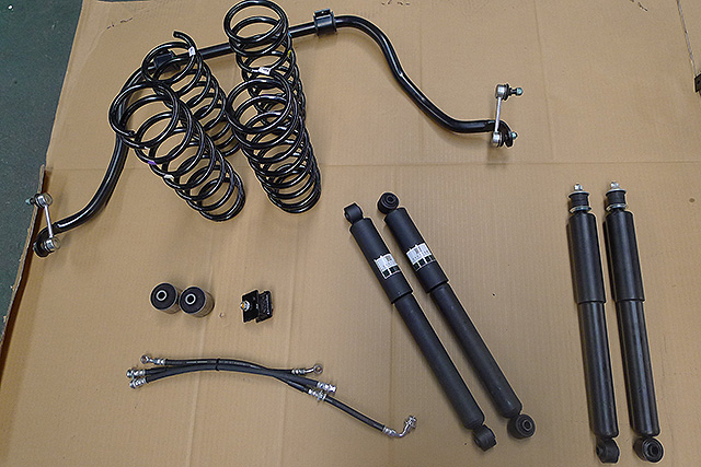 - 内容:ショックアブソーバー(F/R)、コイルスプリング(F/R)、スタビライザー(F)、トレーディングアームブッシュ(F)、トランスファーマウント、ブレーキホース(3本)、ラテラルロット(F/R)