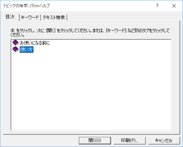 JTrim.hlp の起動確認