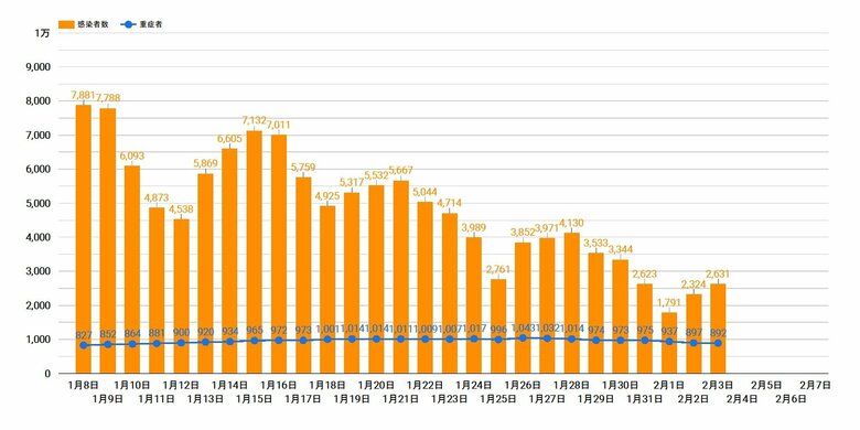 感染拡大… 新型コロナウイルス 全国の重症者892人 2日連続900人下回る 国内 2021年2月4日 木曜 午後0:14 厚生労働省によりますと、2月3日までの新型コロナウイルスの全国の重症者は892人で、前の日から5人減りました。 重症者が900人を切るのは2日連続です。 全国の感染者数と重症者数推移 この記事の画像(2枚) 感染拡大… 新型コロナウイルスの他の記事 東京都の感染者数推移【最新情報】 国内 2021年2月7日 新型コロナ 東京都で新たに429人の感染確認 国内 2021年2月7日 新型コロナ 全国の重症者795人 国内 2021年2月7日 コロナ禍の祭り中止で「型抜き」が苦境…メーカーに現状と不安を… 国内 2021年2月7日 全国の感染者・重症者数推移 【緊急事態宣言期間】 国内 2021年2月7日 新型コロナウイルス 累計国内感染者数【最新情報】 国内 2021年2月7日 一覧ページへ