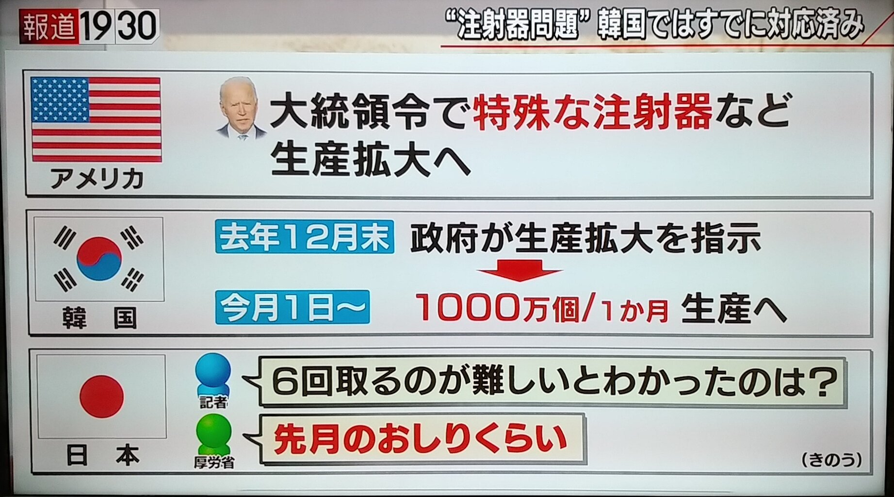 つまり日本政府は国内に特殊な注射器を生産できる技術を持ったメーカーがいるのに、生産の依頼を全くしなかったということ