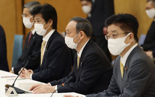 感染力が強い変異ウイルスの海外からの流入を防ぐため、水際対策の強化も続ける。首相は対策本部で来月から「短時間で検出できる新たな方法の検査を全ての都道府県で実施する」と語った。