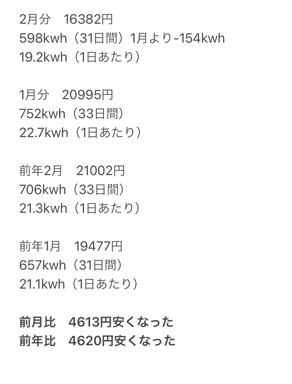 2月の電気代が、下がりました