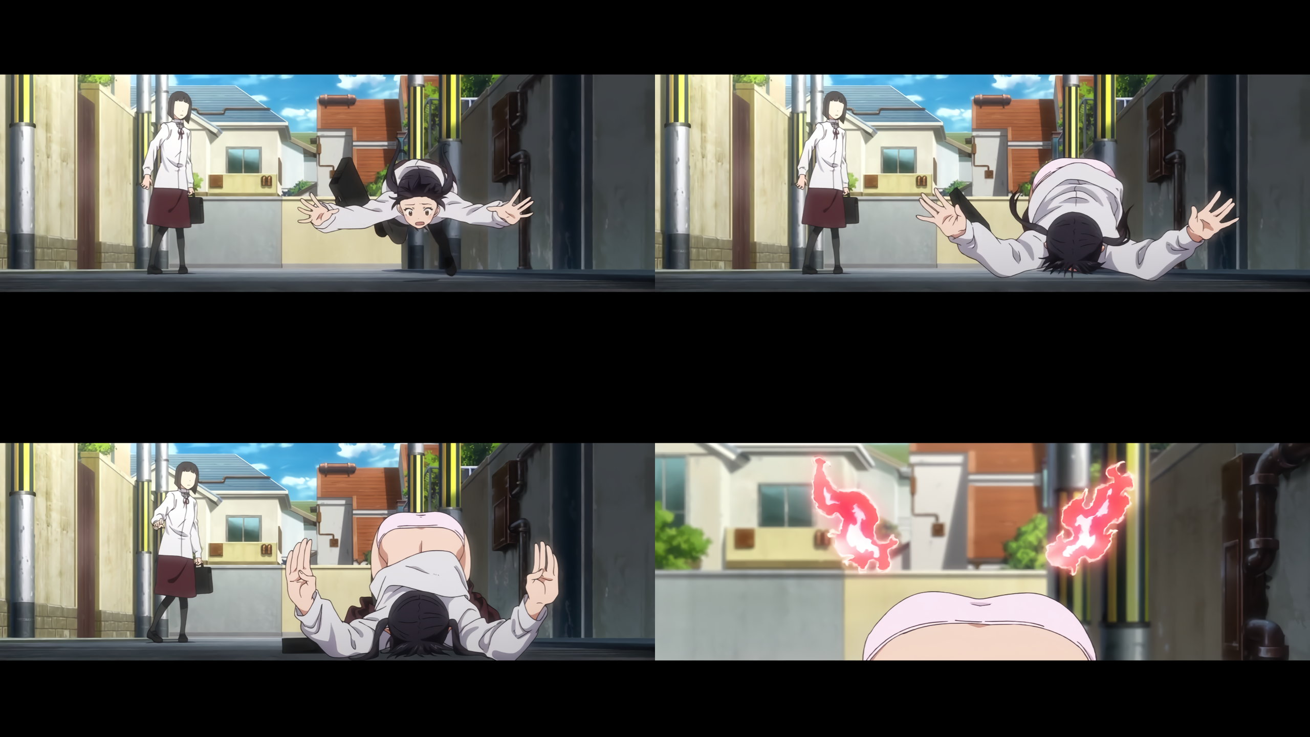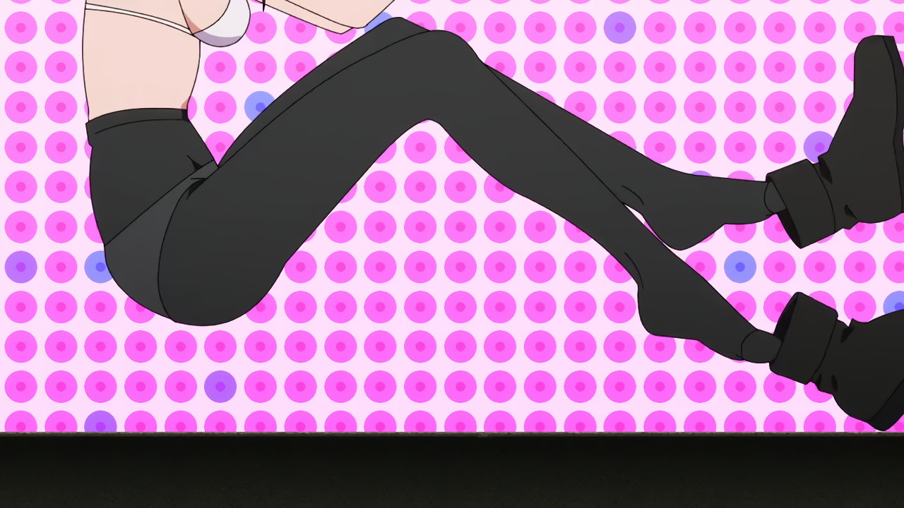 弾木小隊長にラッキースカート捲りされ、タイツ越しパンチラする環。