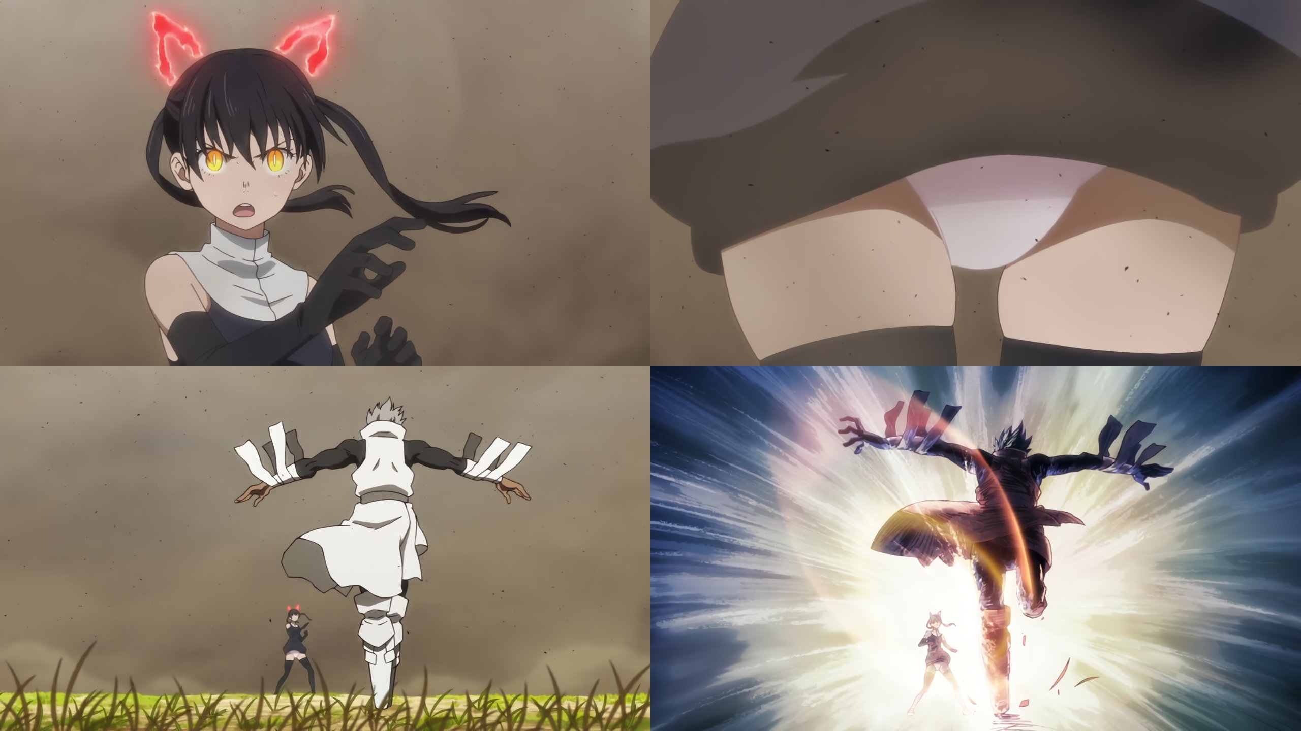 衣服破壊状態・透けパンツ丸見えの格好で戦う環。