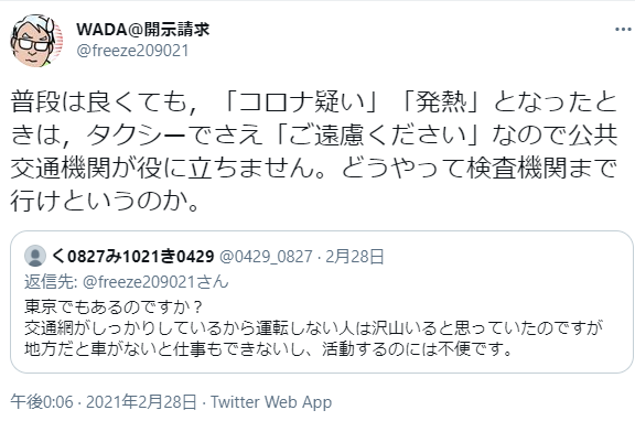 その一例が「宣伝カー」ですね。WADAさんは以前、自身が発熱して新型コロナを疑う状況になったら、居住する江東区の共産党地区委員会が所有する宣伝カーで病院まで連れて行ってもらうと公言。地区委員会に約束まで取り付けたとツイートしていました。