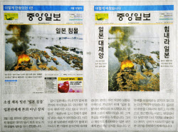 【ソウル=共同】27日付の韓国紙、中央日報は、東日本大震災発生当日の状況を報じた3月12日付の1面で「日本沈没」という見出しを付けたことが「災害に苦しむ日本人を傷つけた」として、当時の紙面を取り消すとする「反省文」を掲載した。