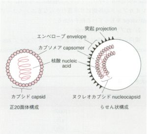ウイルス内部の核酸とカプシドが結合したものをヌクレオカプシドnucleocapsidと呼びます。