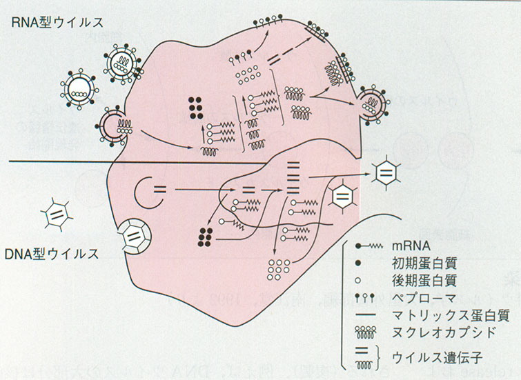 ウイルスによって増殖サイクルの時間的経過は異なり、同じへルペスウイルス科でも単純へルペスウイルスは細胞に感染後5~10時間以内に感染粒子が形成されるのに対し、ヒトのサイトメガロウイルスは感染粒子形成には数日以上かかります。新興感染症とは?