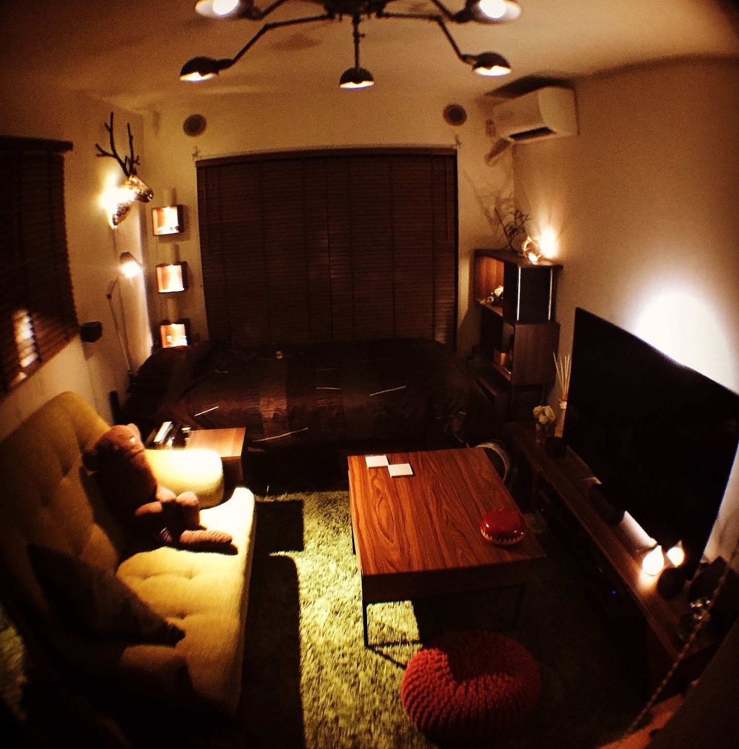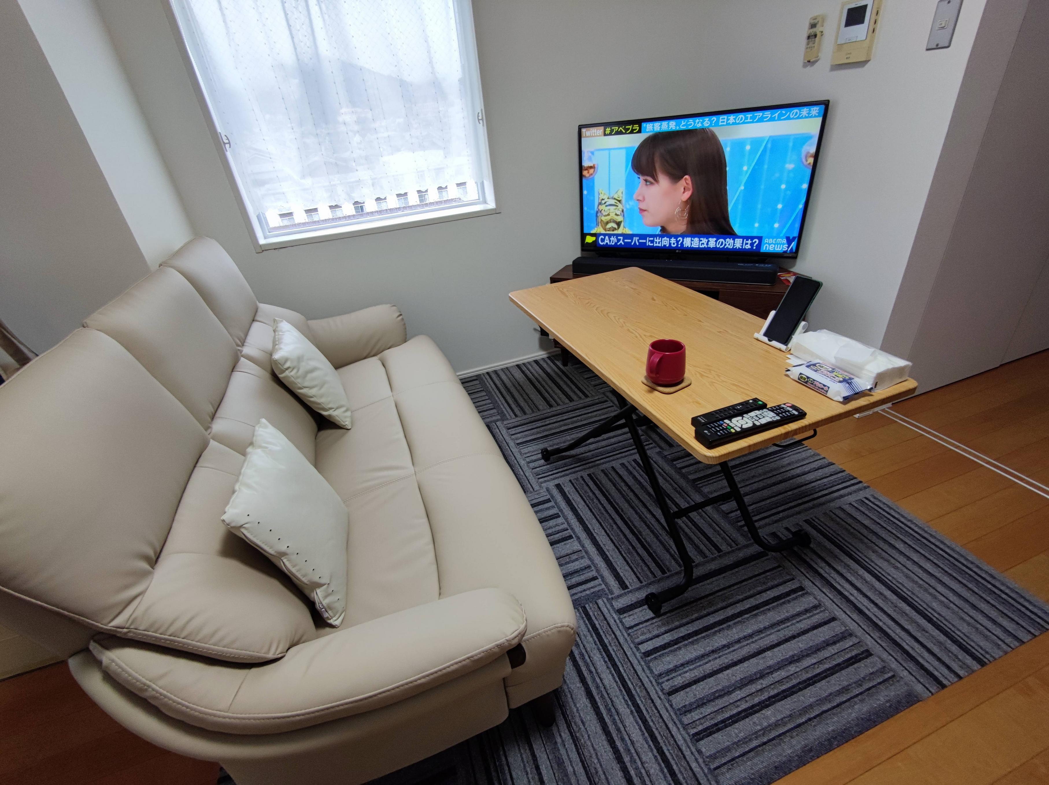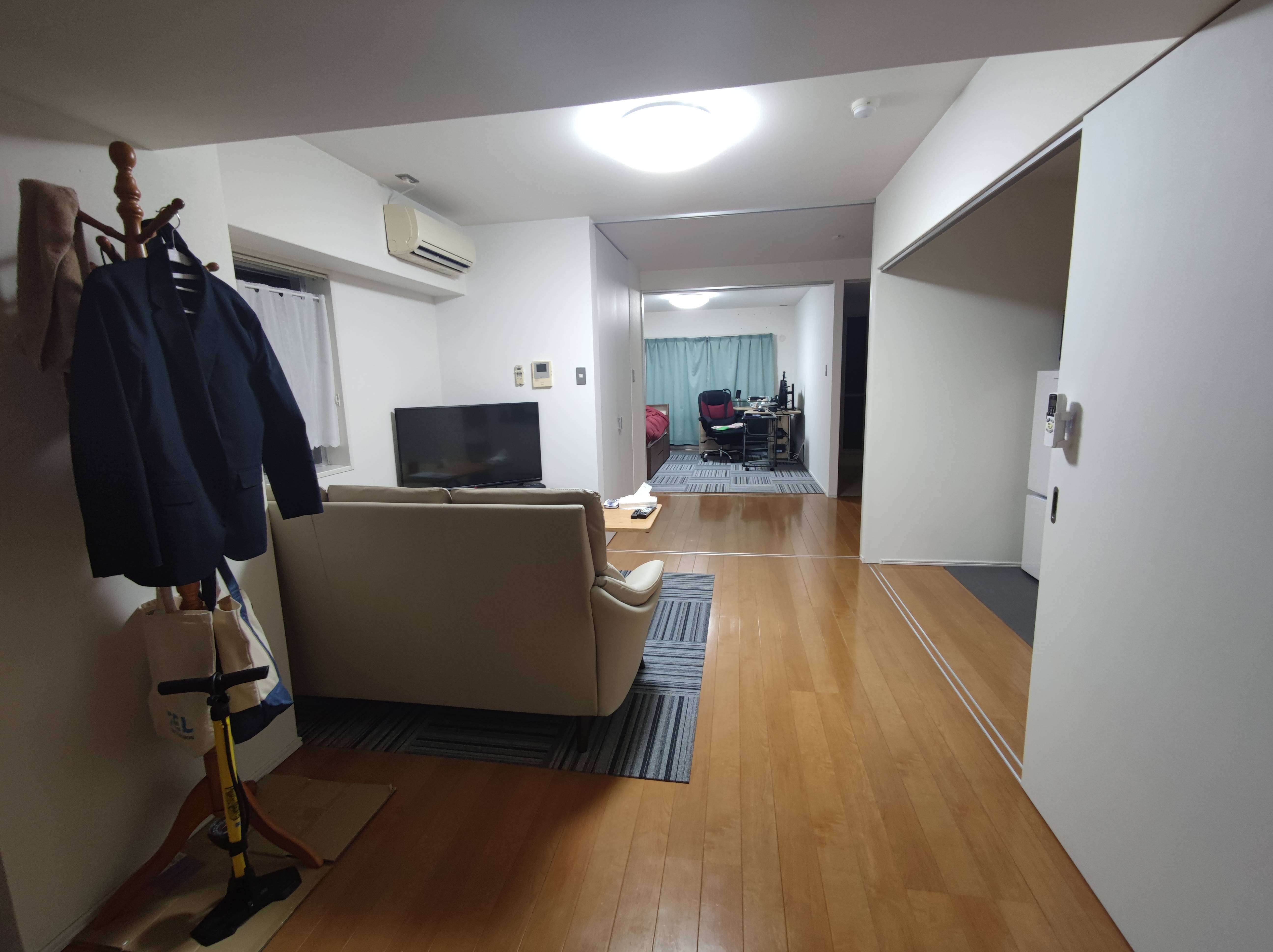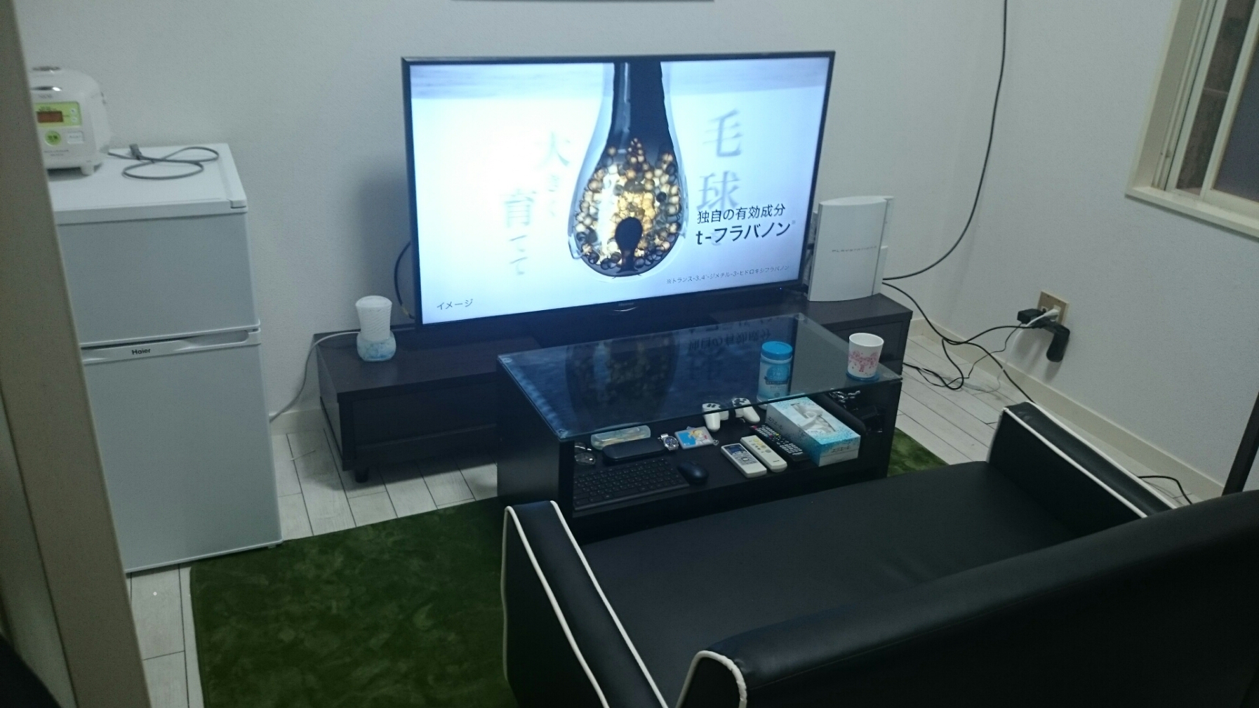 スペースあるし家電はいいの持ってそうだしカーペットか何か敷いて小物の収納もう少し増やせば落ち着くんじゃないか