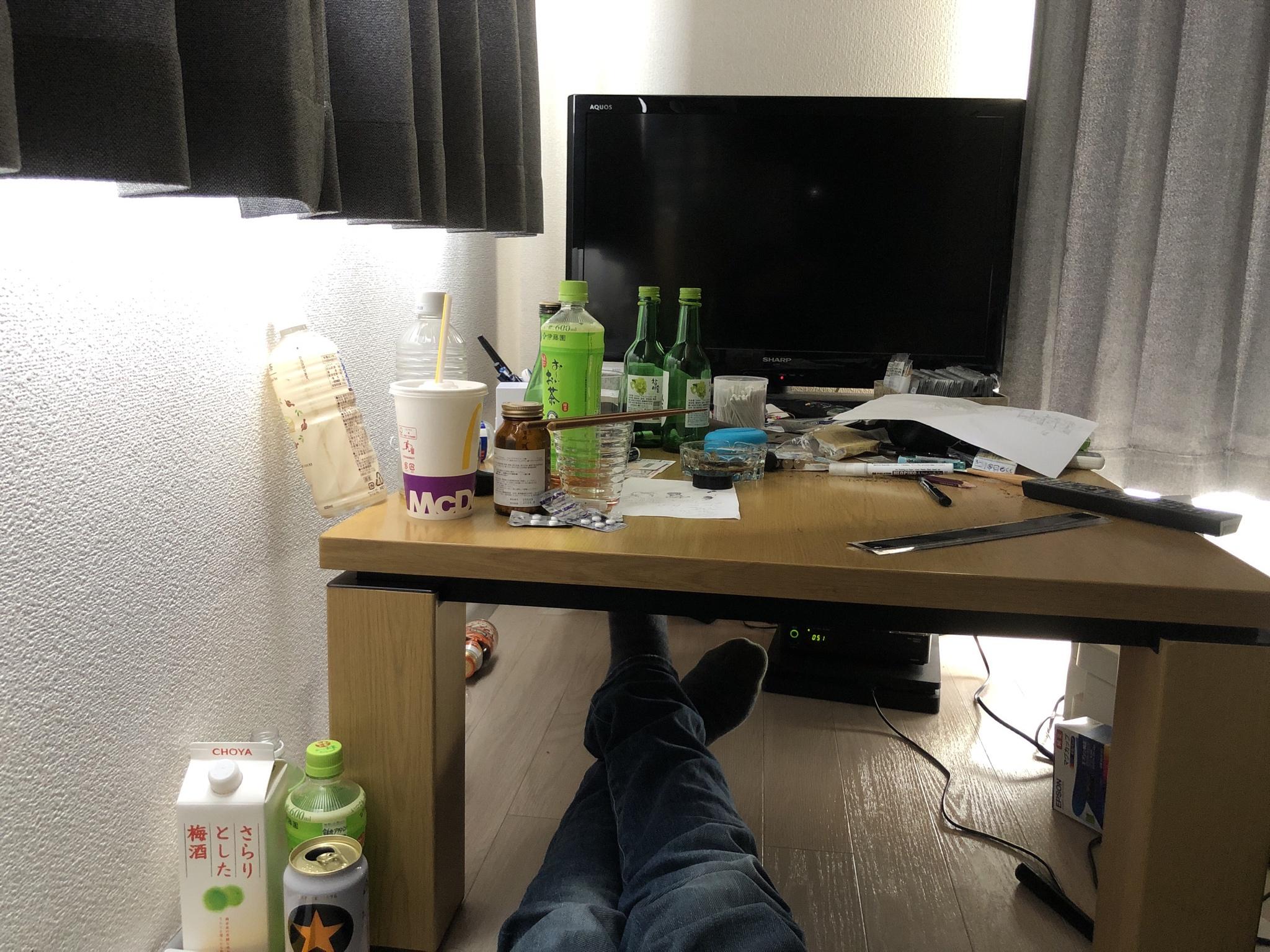 机どかして布団敷くの面倒なんよね~