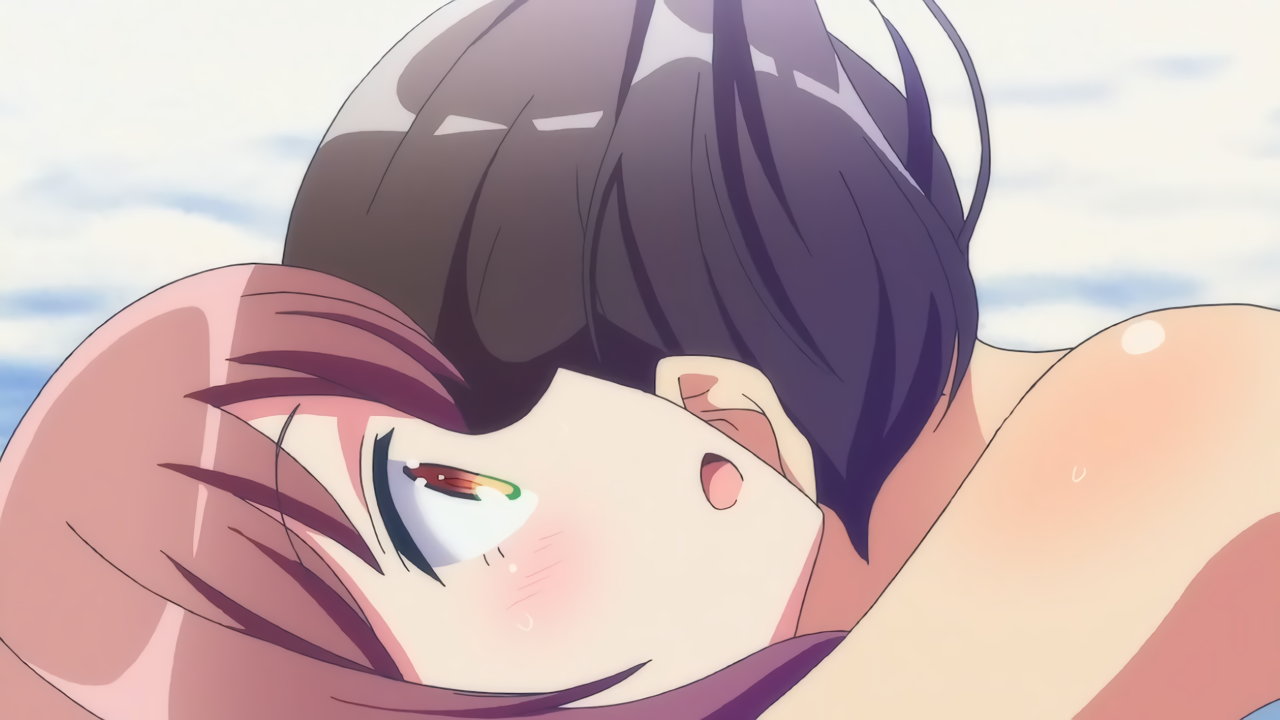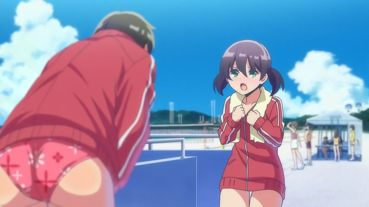 目の前で水着を脱ぐ遥に困惑するかなた。