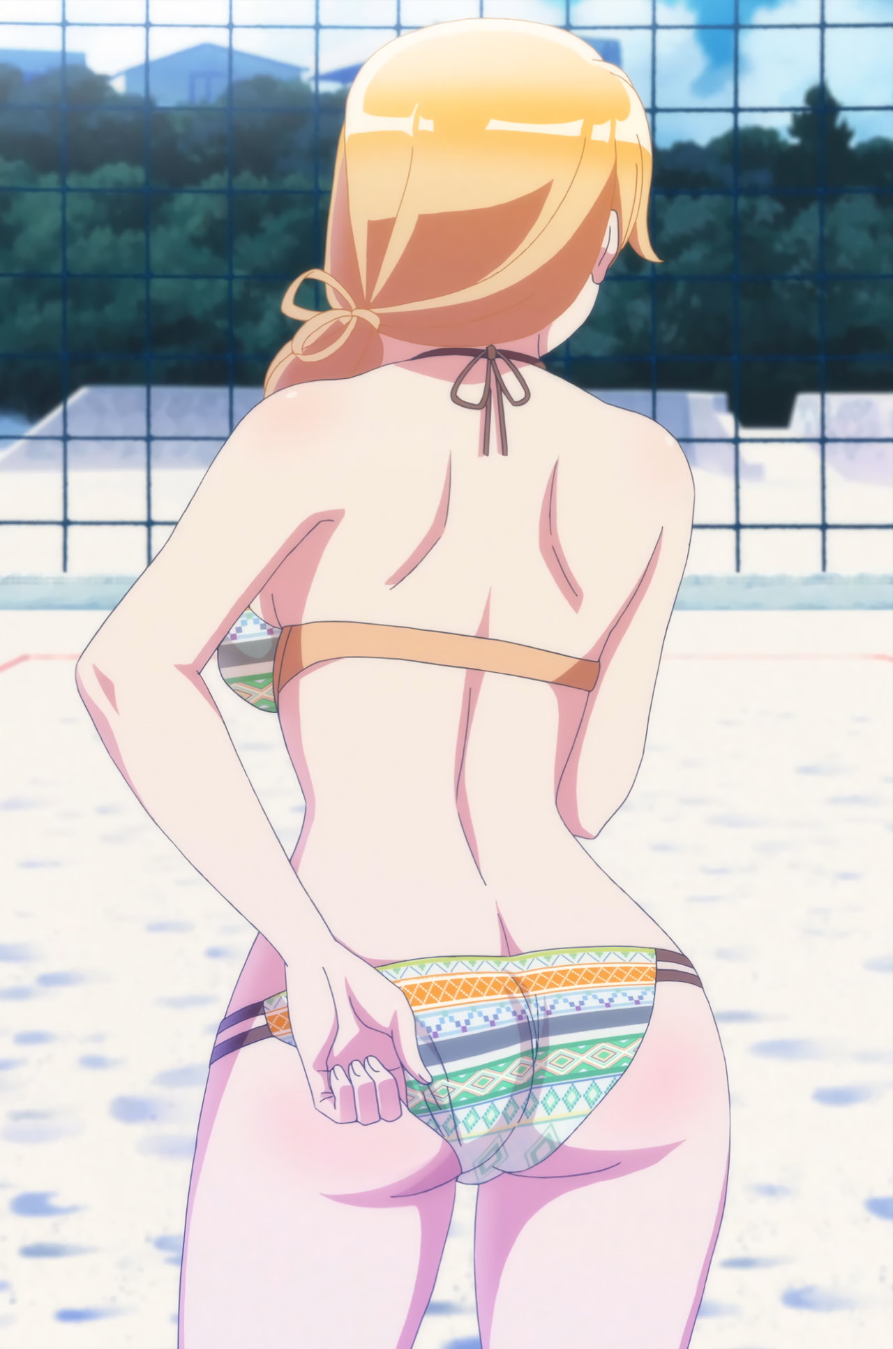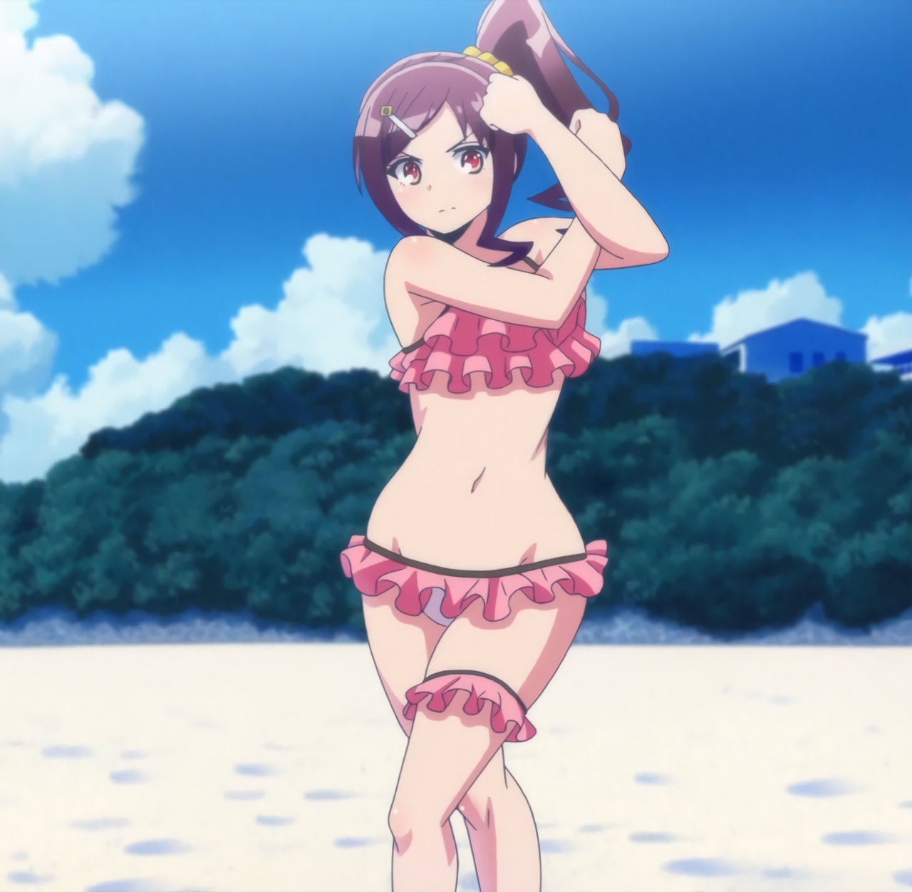 水着の食い込み直しをする紅愛。