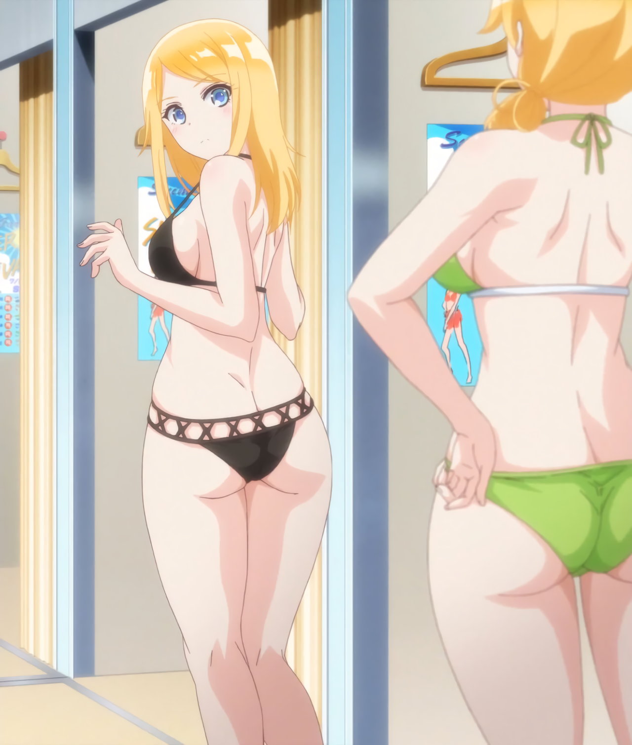 水着試着中の愛衣と舞。
