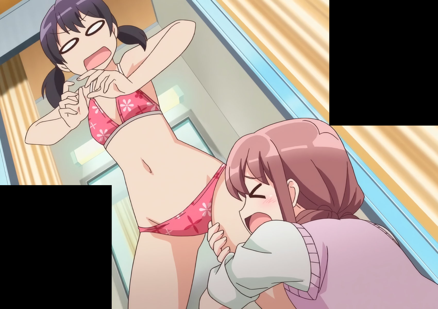 遥の脱衣シーンを目撃するかなた。