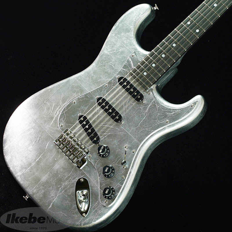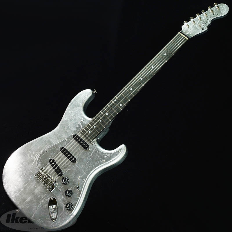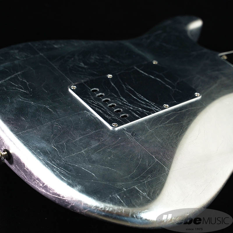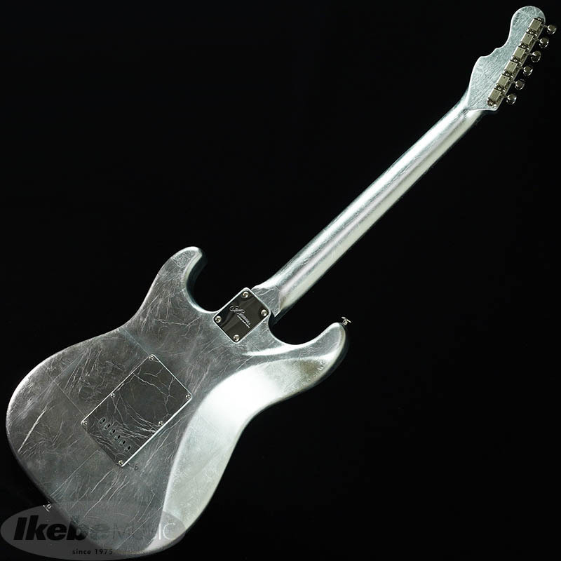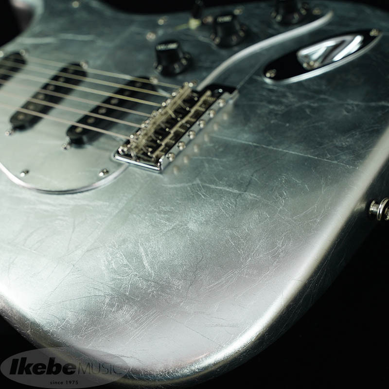 ボディには15cm~20cnの銀箔を継ぎ目を合わせてのせられています。更にピックガードやバックプレートにも銀箔がのせられていますが、ボディとパーツの境目が見えないほど高い精度で仕上げられています。(パーツを外される際は銀箔が剥がれる恐れがございます。ご注意下さい。)
