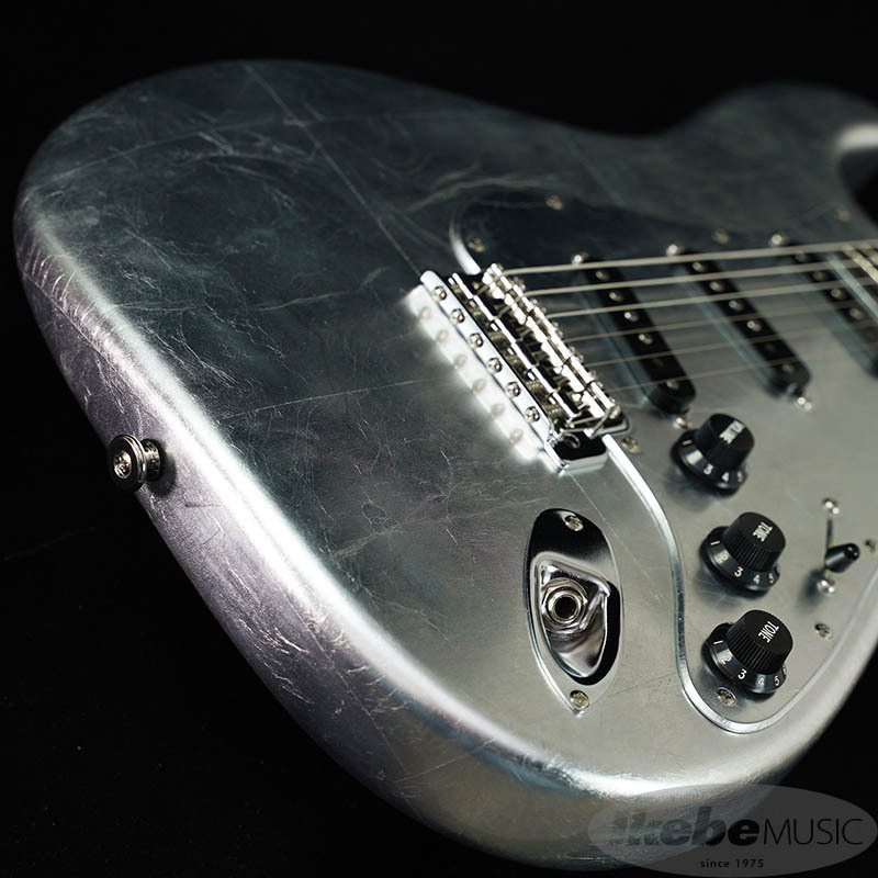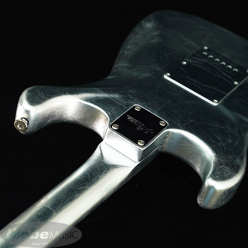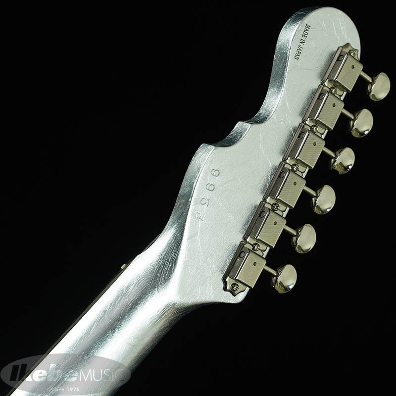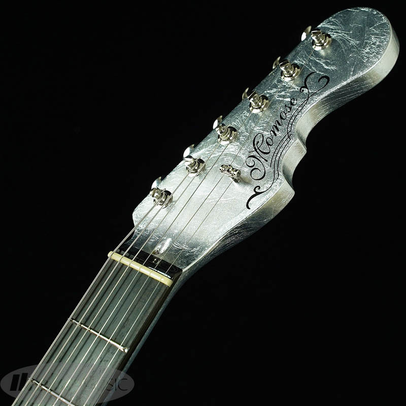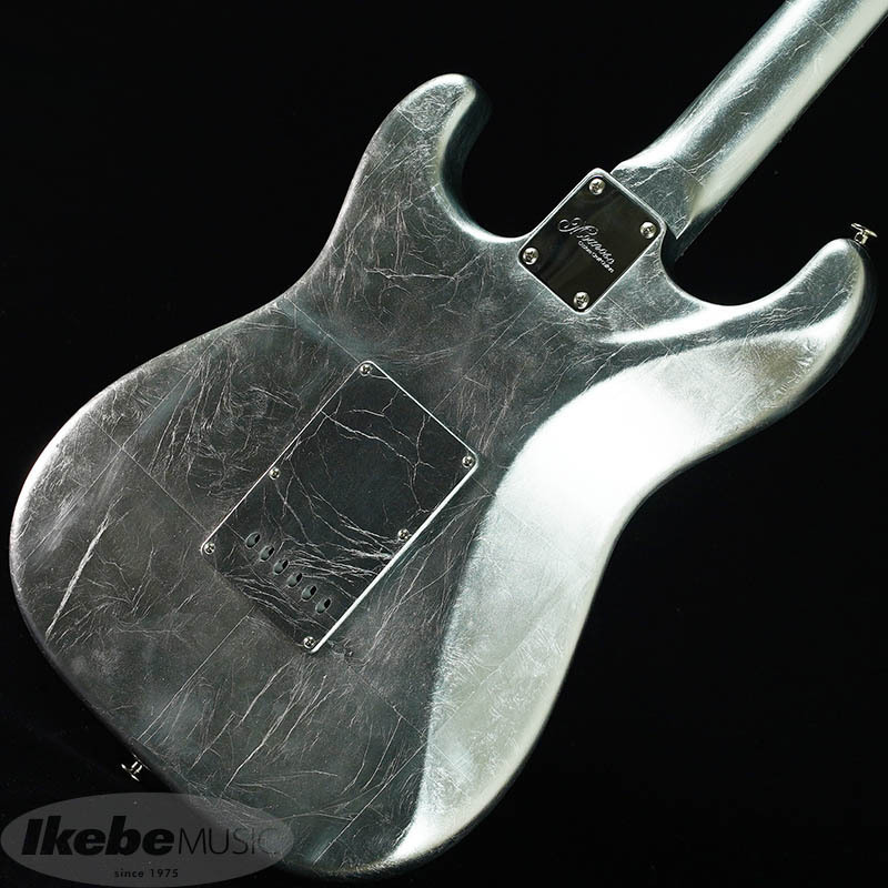 ボディには15cm~20cnの銀箔を継ぎ目を合わせてのせられています。更にピックガードやバックプレートにも銀箔がのせられていますが、ボディとパーツの境目が見えないほど高い精度で仕上げられています。(パーツを外される際は銀箔が剥がれる恐れがございます。ご注意下さい。)