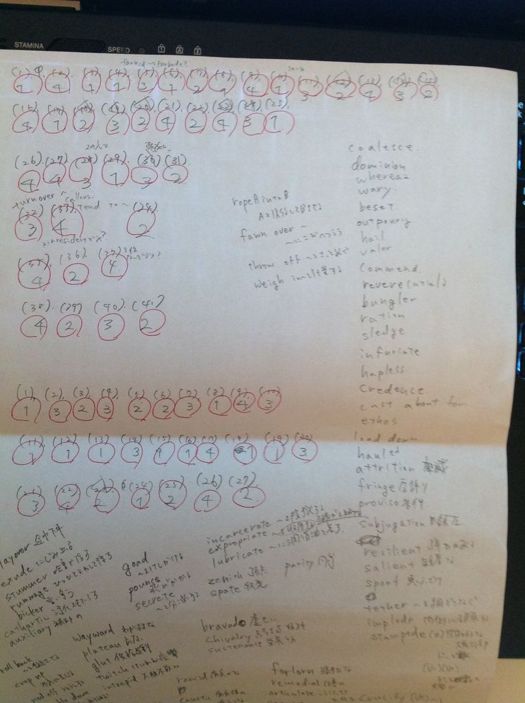 リーディングはかなり自信があったけれども、語彙問題は2問勘で、