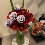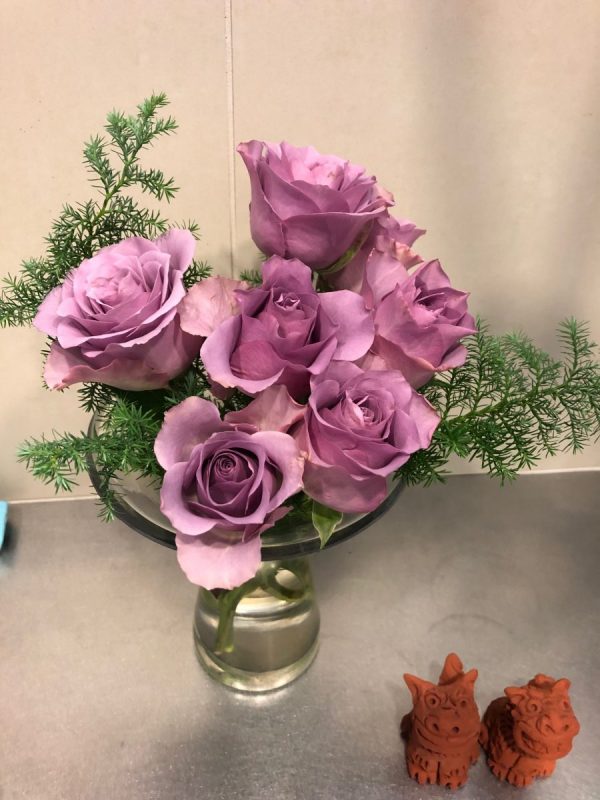 今週はスモーキーな紫ピンクと緑の2色です。バラの華やかさが際だっていますね。