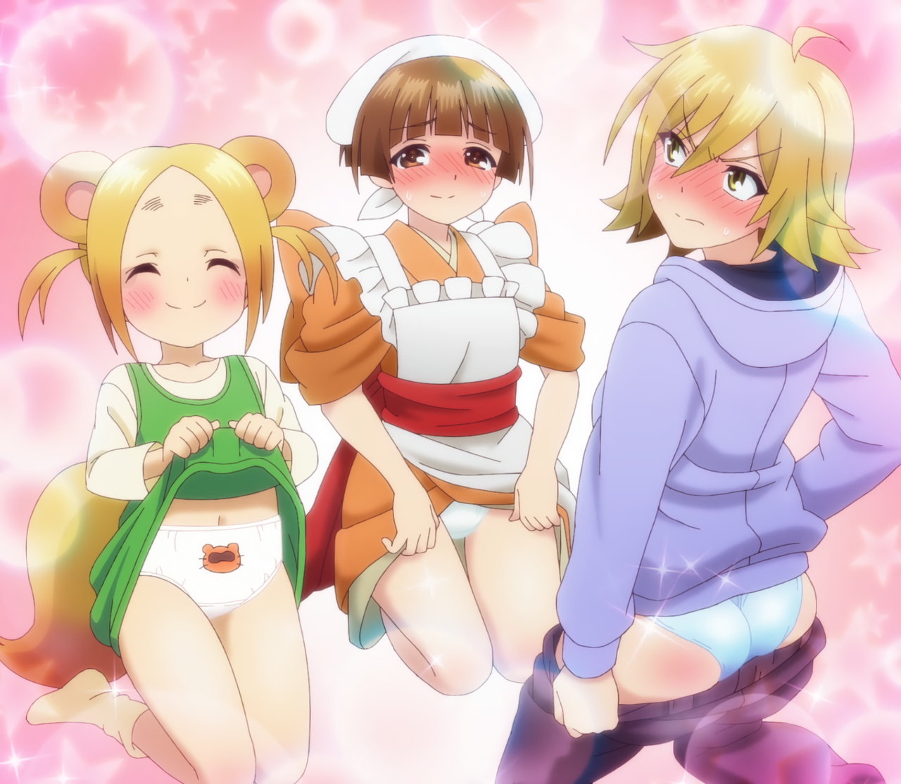 着替え中・下着姿の狭霧・雲雀・千紗希。