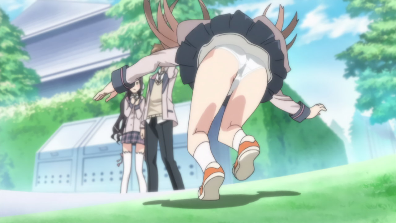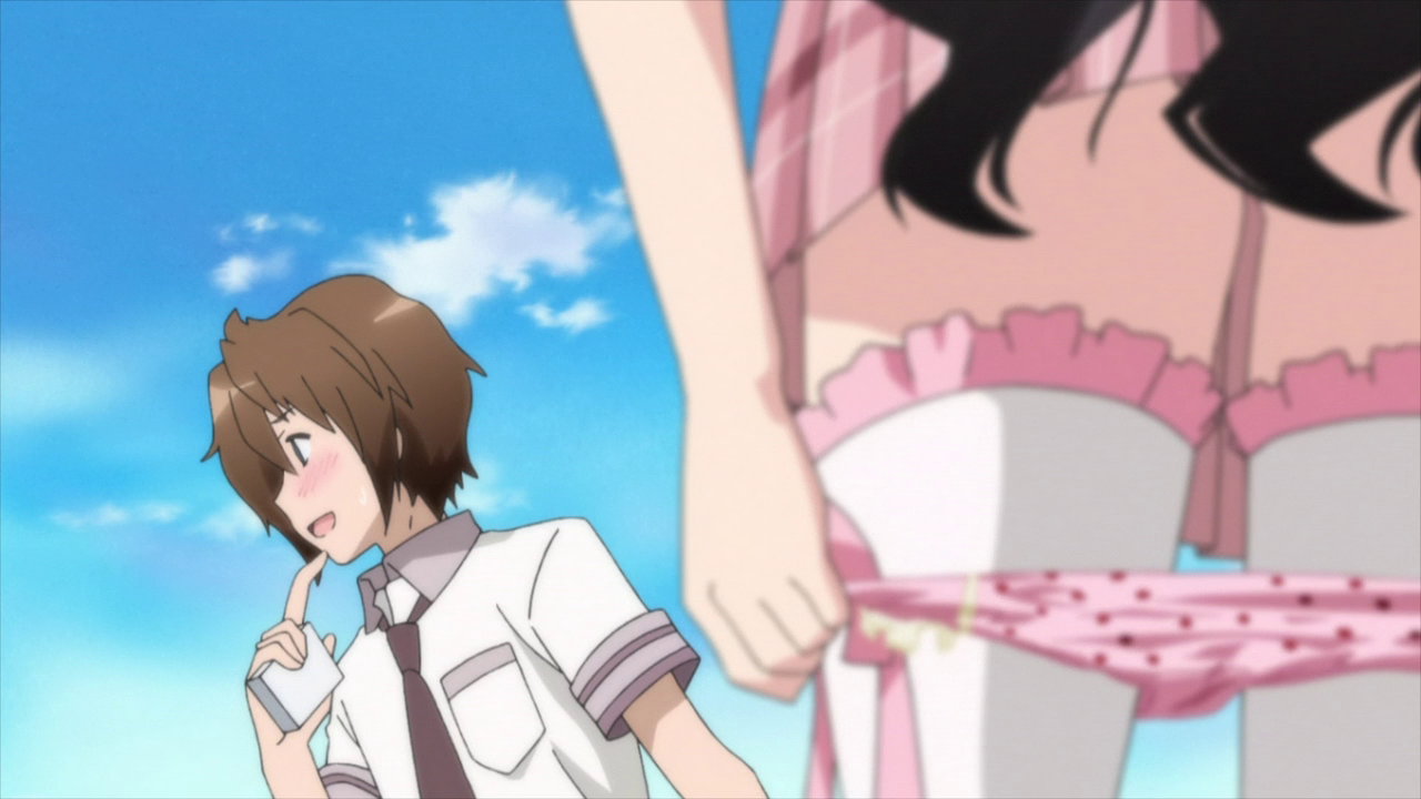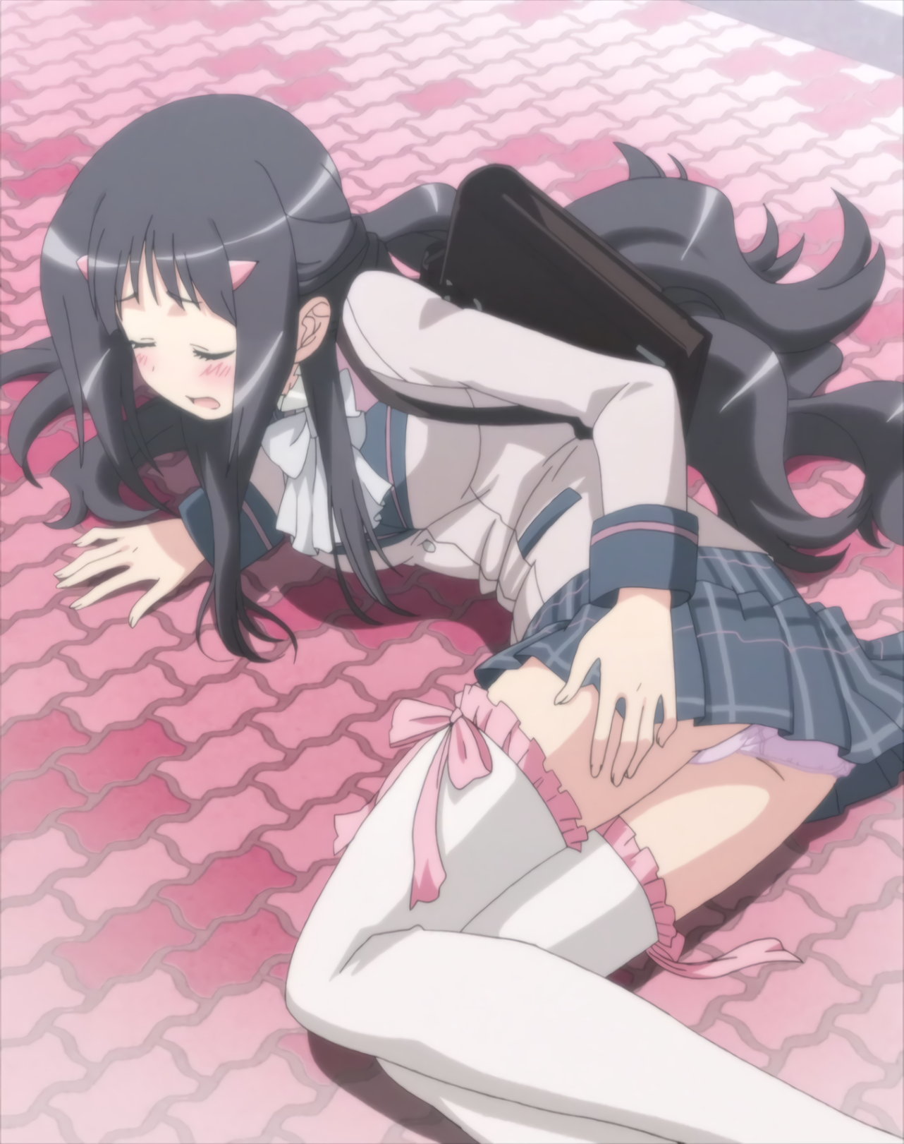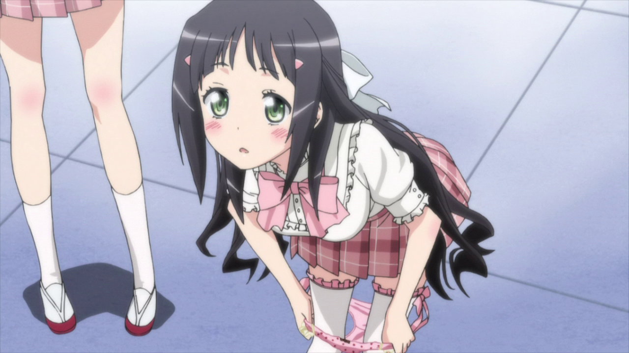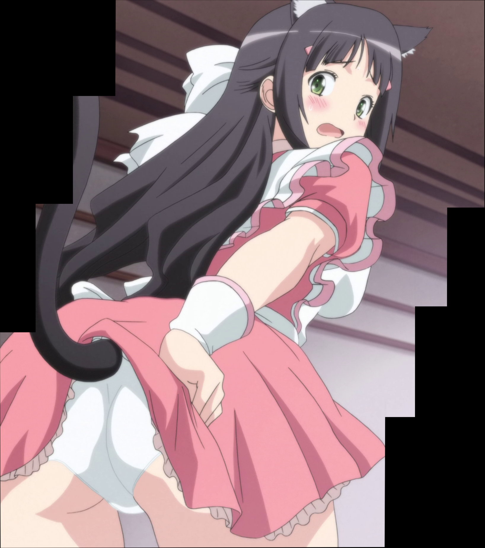 猫耳メイド服を着た凜香のパンツ丸見えシーン。