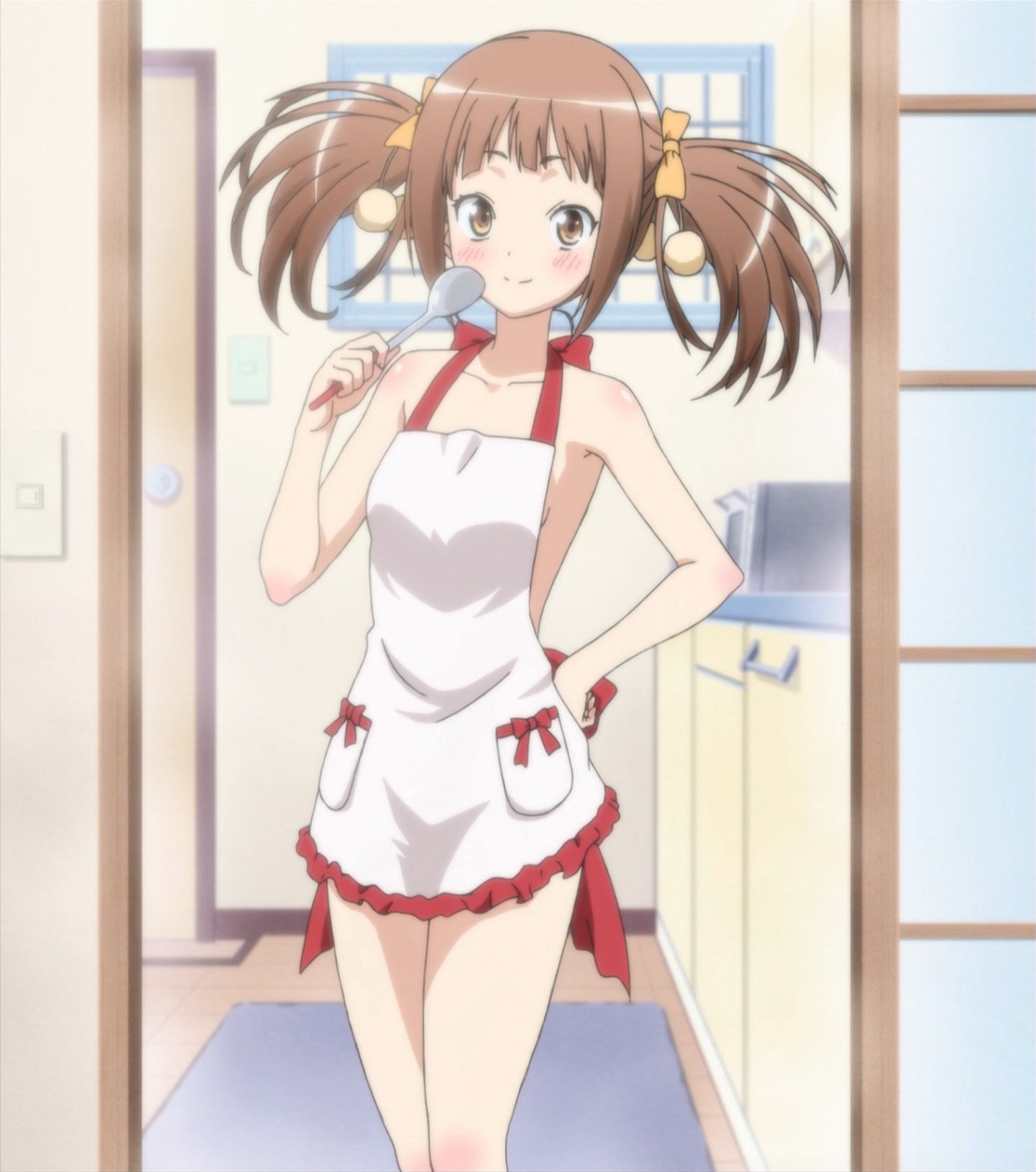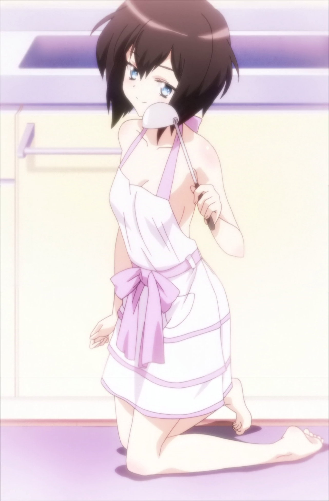 裸エプロンの柚璃奈。
