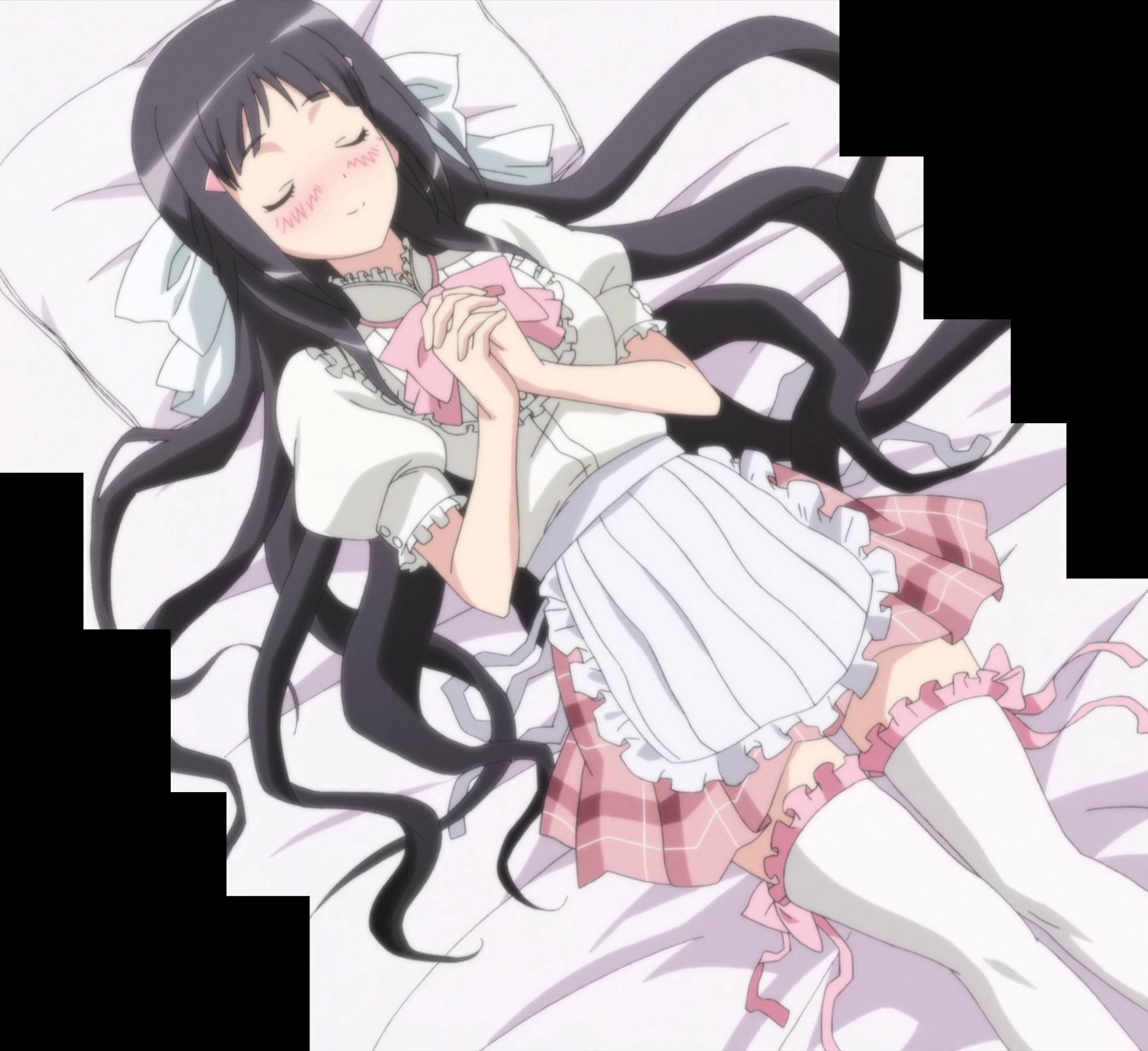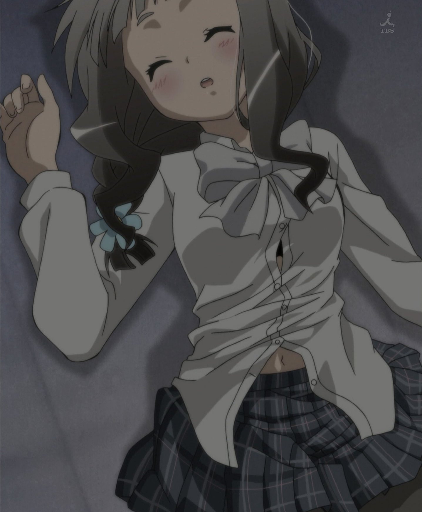 芽衣の寝顔および臍チラ。
