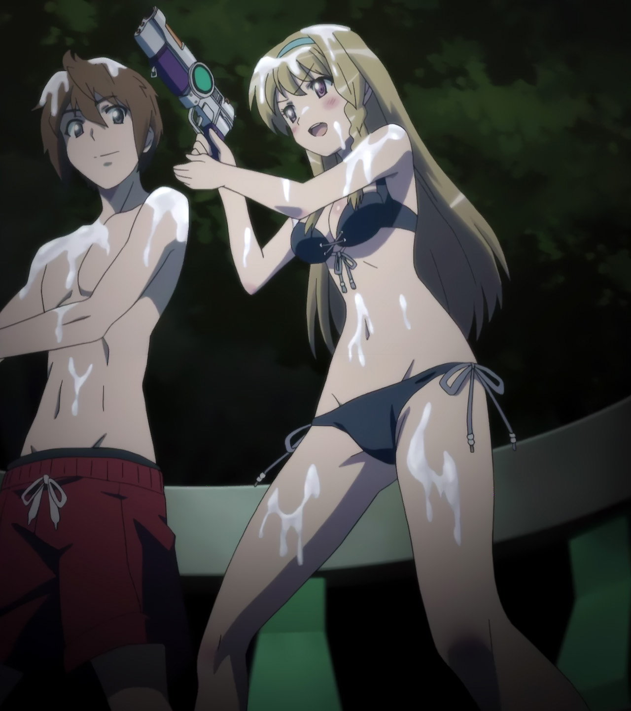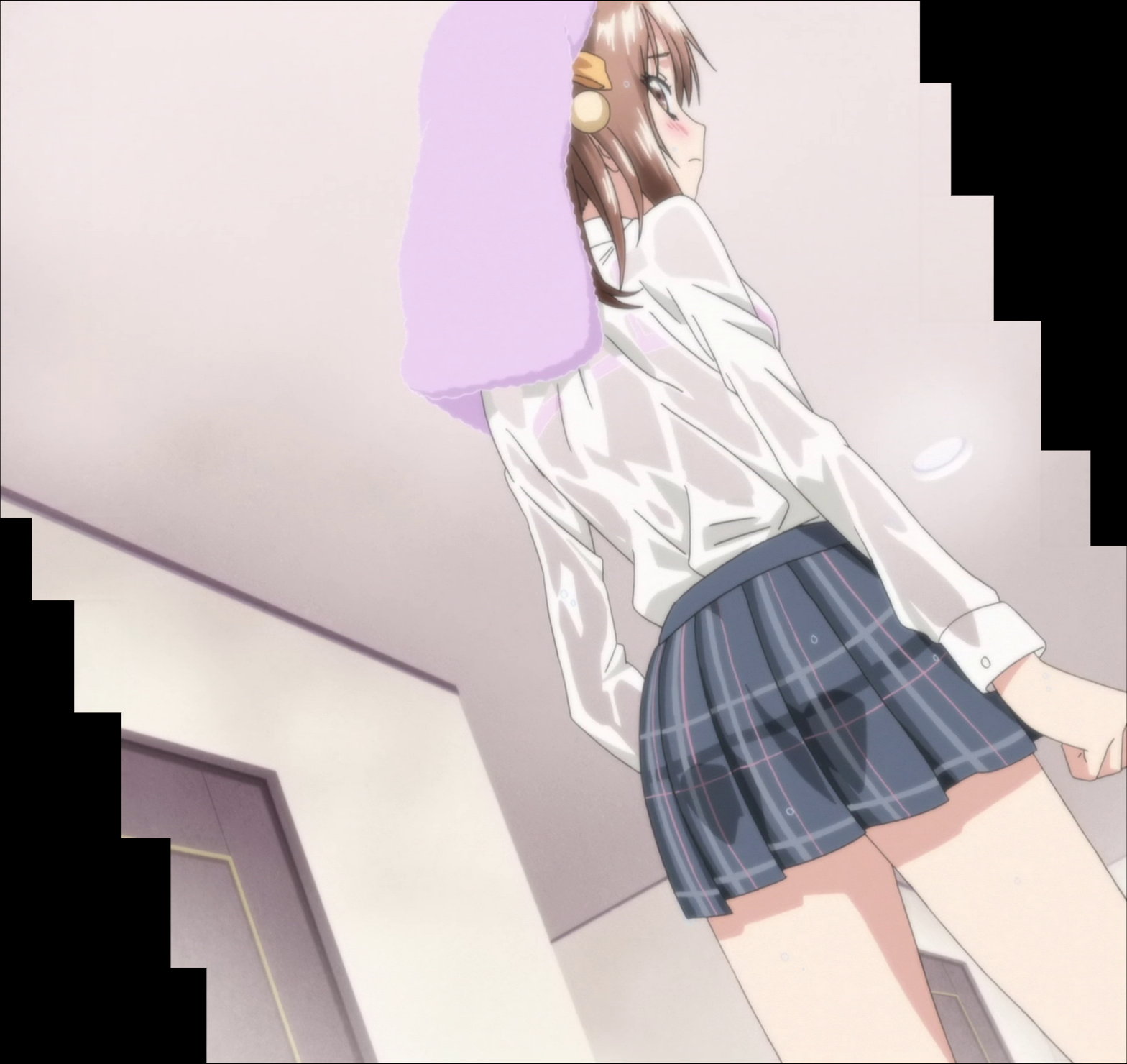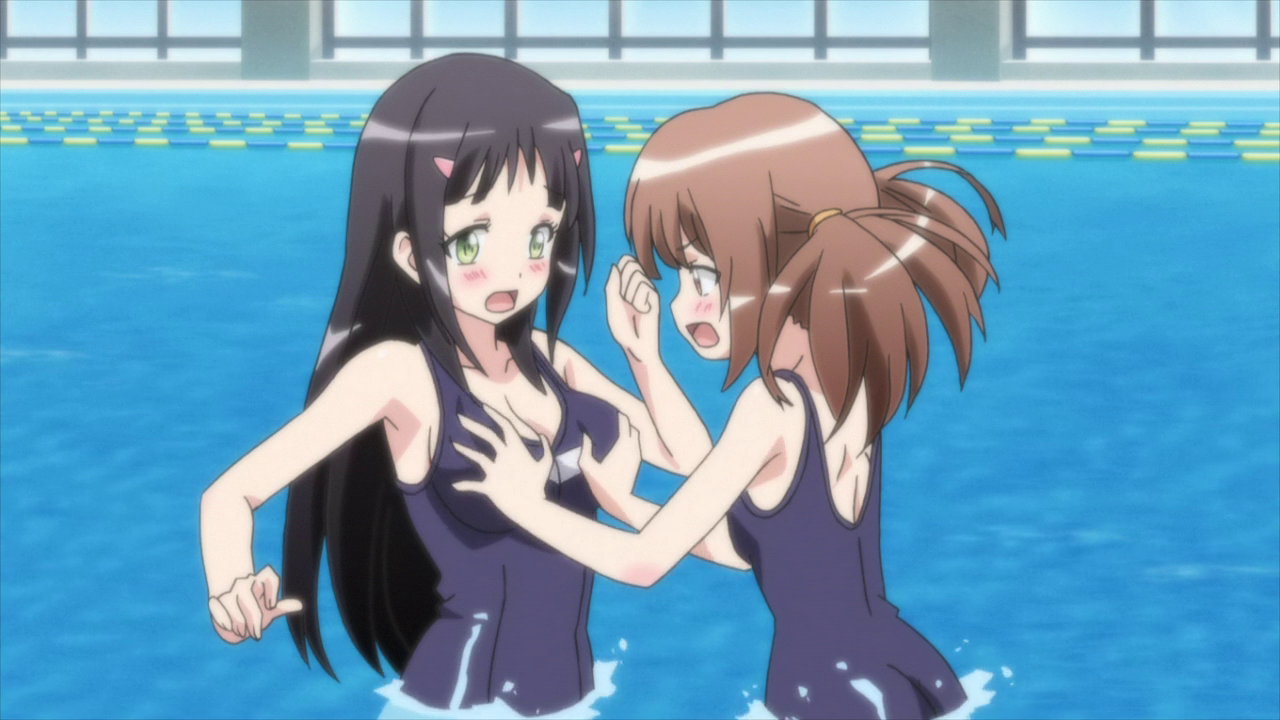スカートが脱げて制服水着の雅。