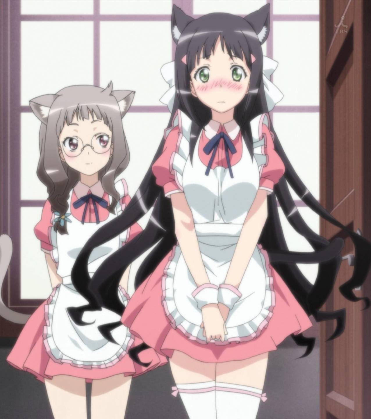 猫耳メイドウェイトレス服を着た心乃枝と芽衣。