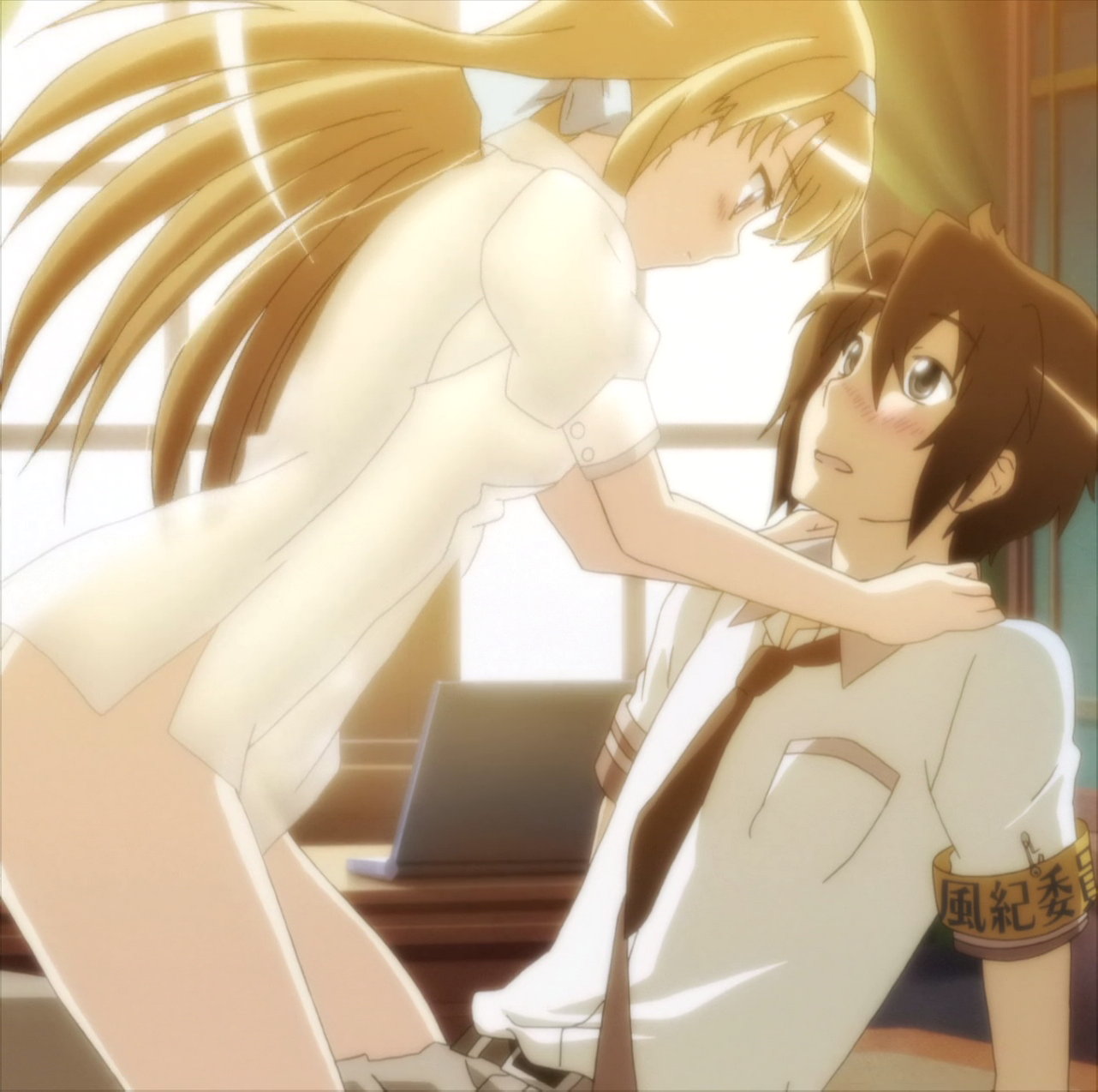 将悟に跨る雅のパンチラ。