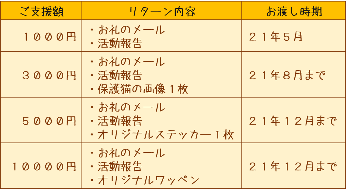 リターンは、ご支援金額に応じて4つを用意させていただきました。