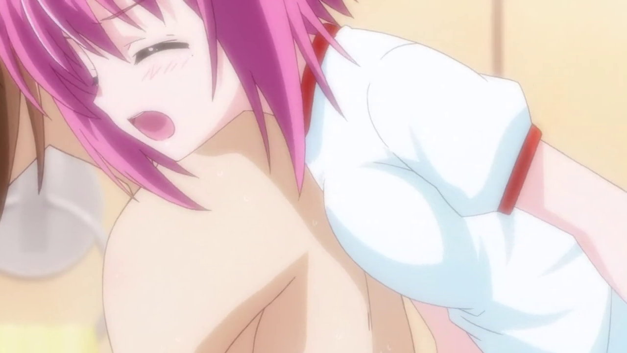 (胸に入り込んだ海老を追い出すために)真帆に乳揉みされて、悶える愛莉。