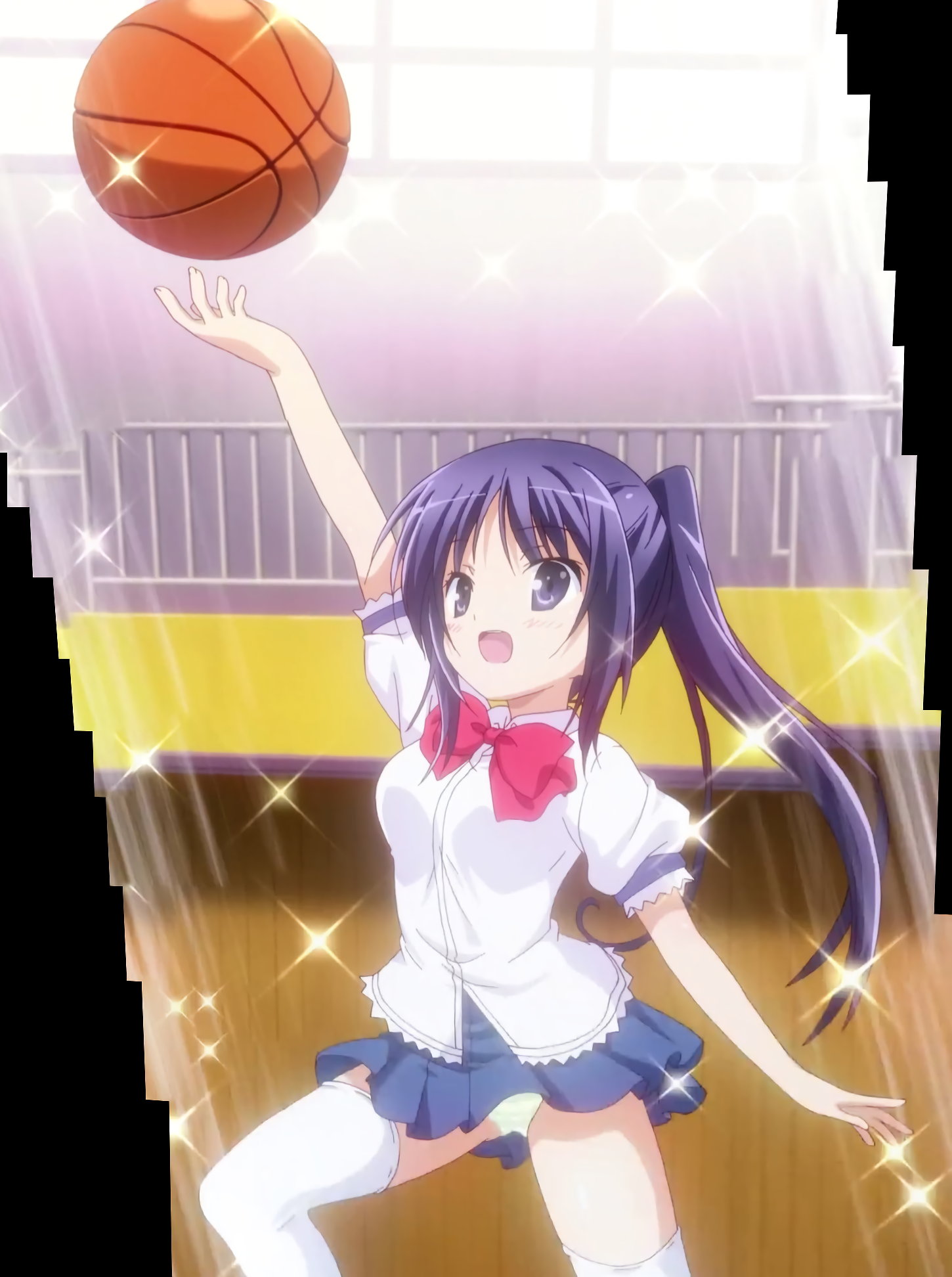 制服姿でパンチラしながらレイアップシュートを決める葵。