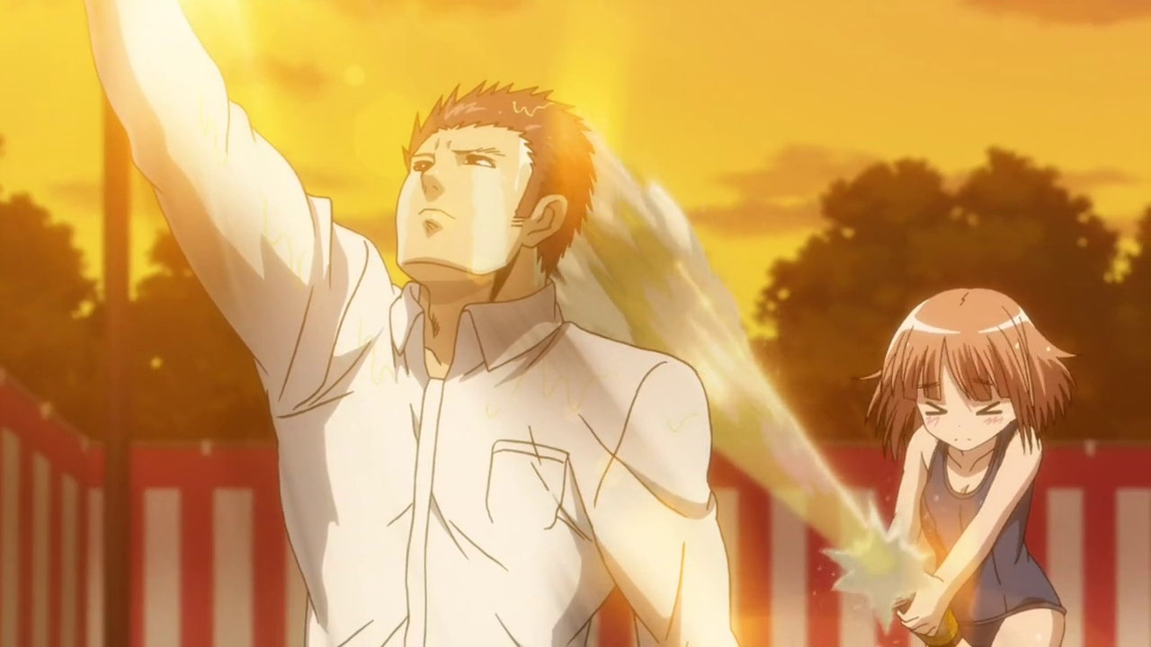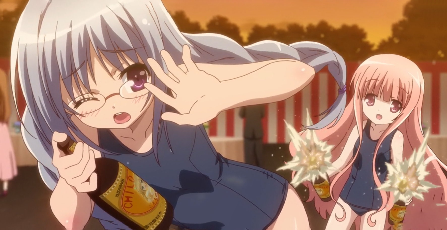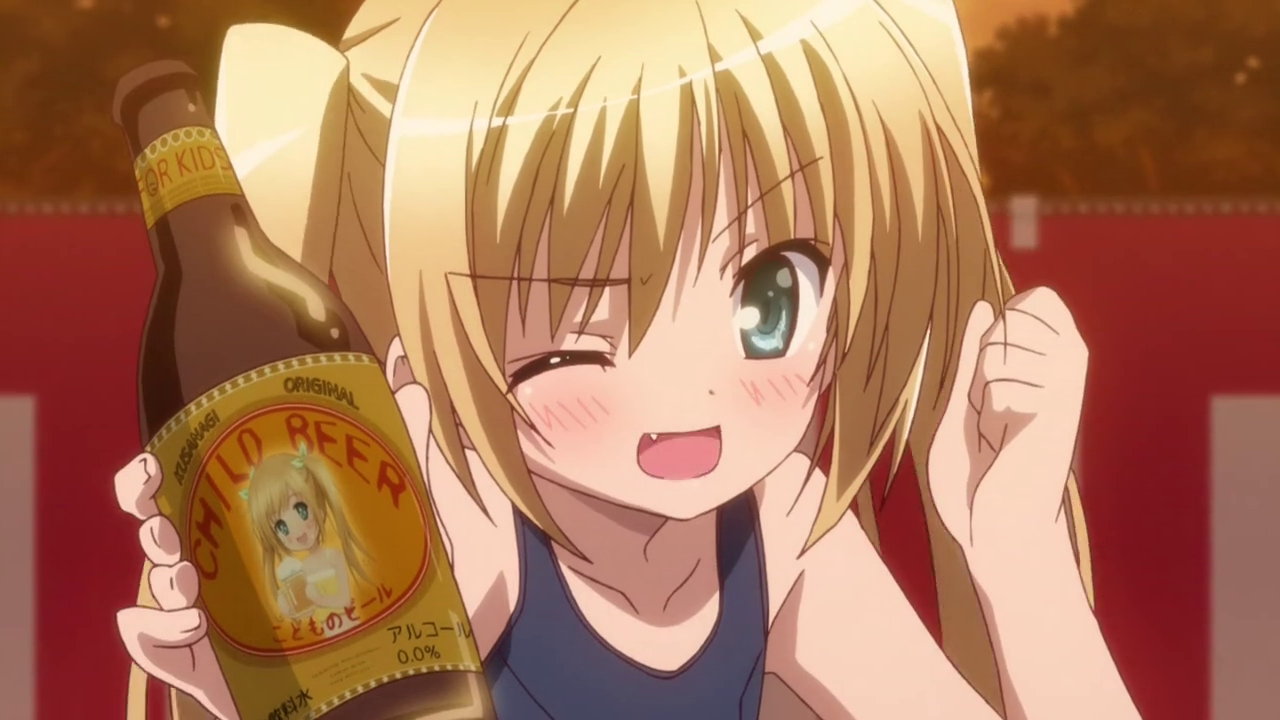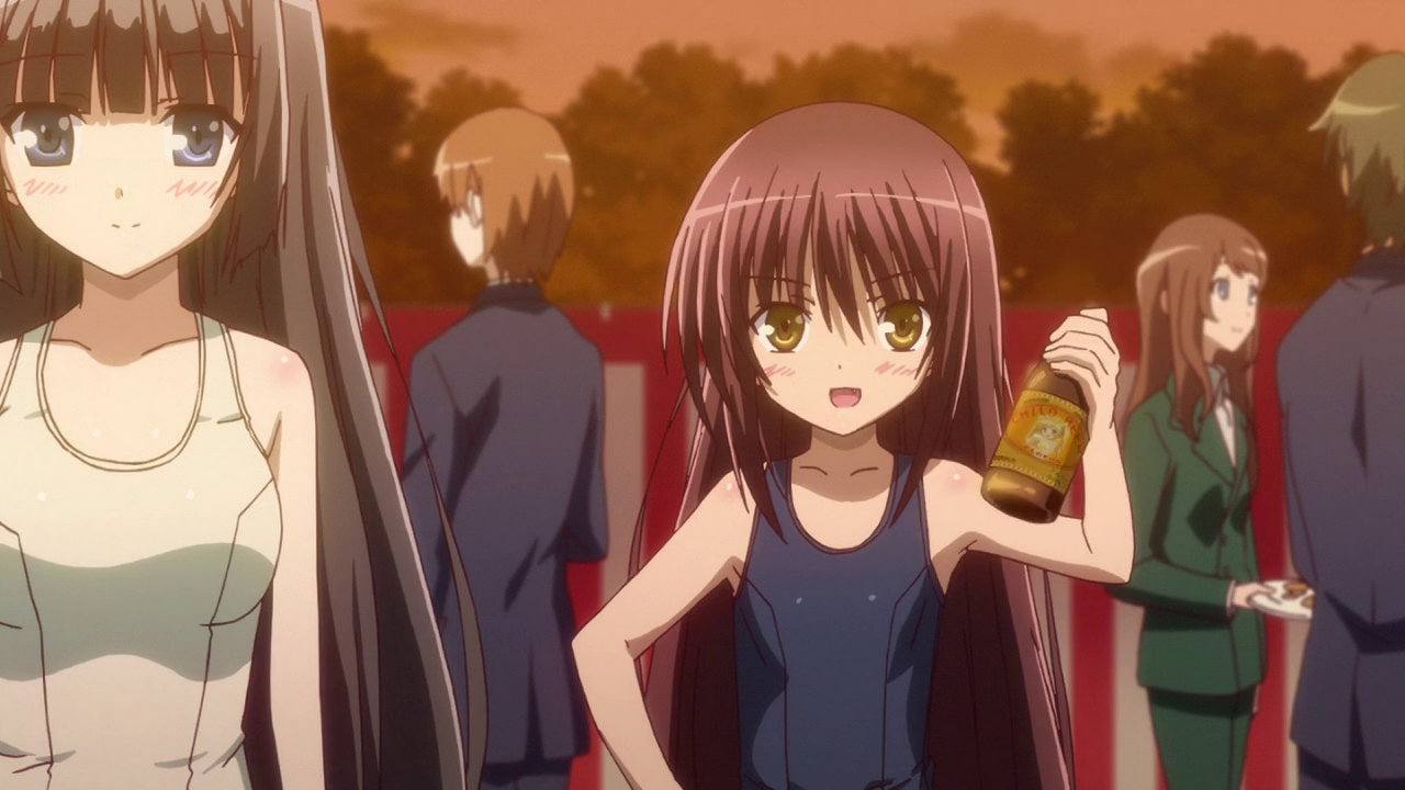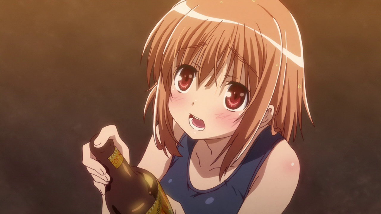 紗季にビール掛けするひなた。