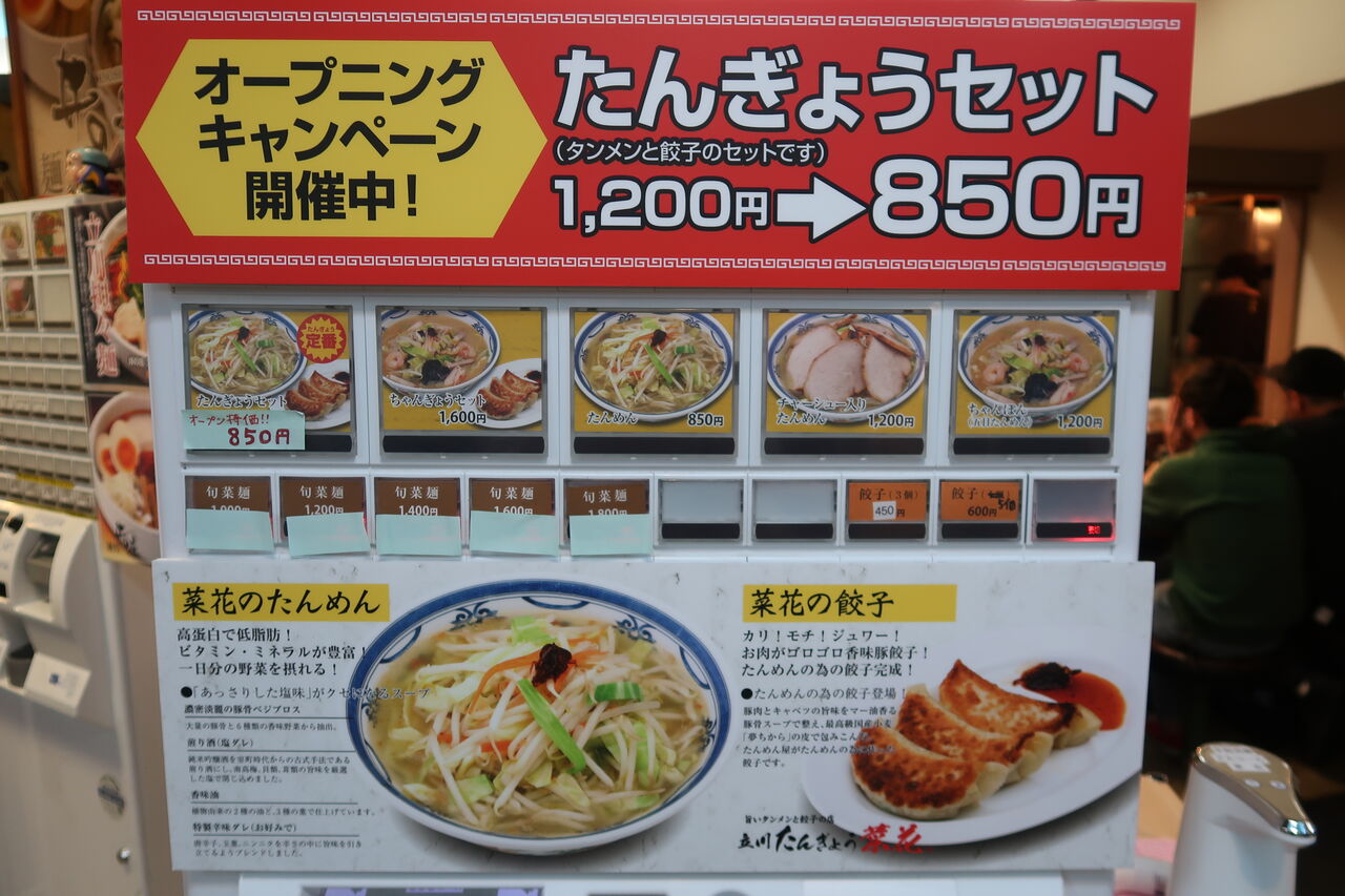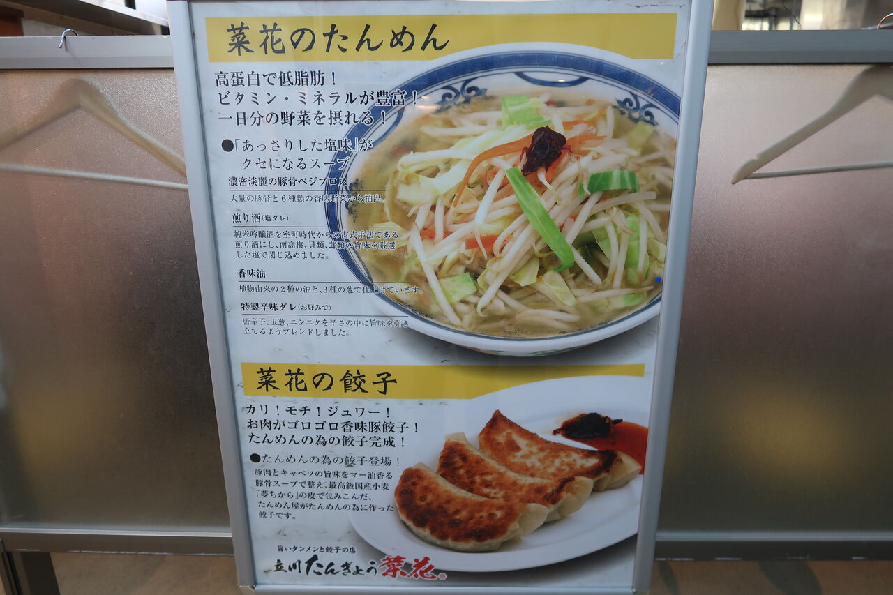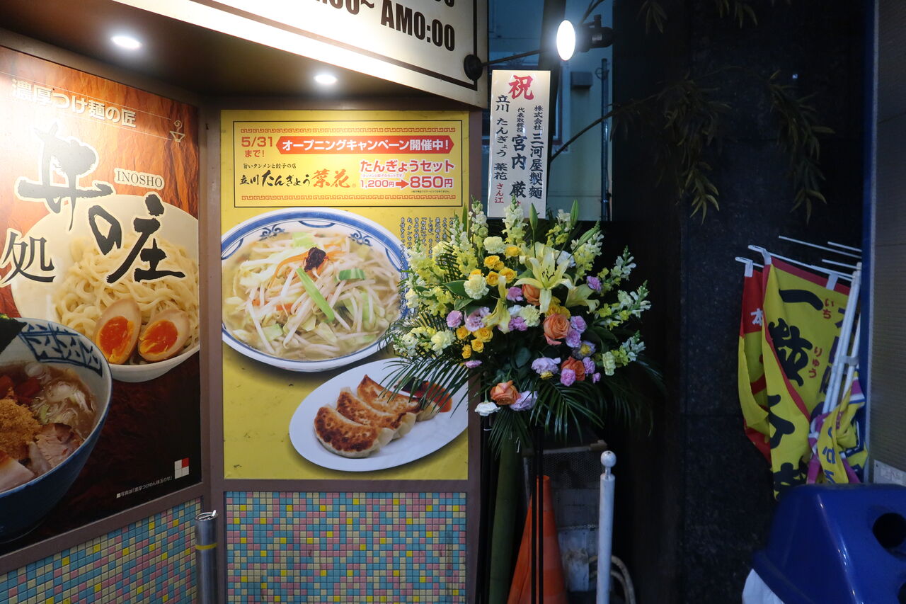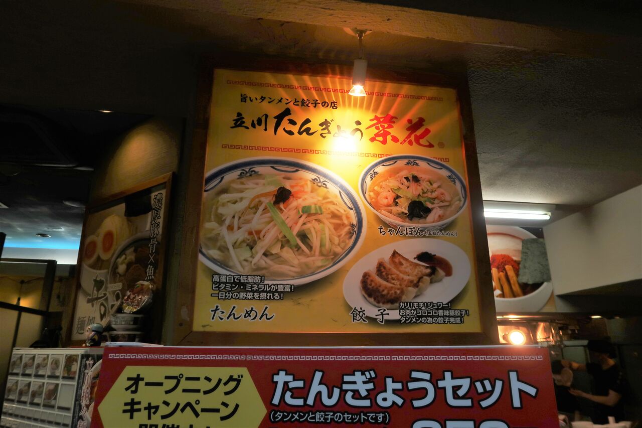 今日紹介するのは、立川駅南口から少しの「アーバンホテル」1Fにあるラーメン集合施設「たま館」内「立川マシマシ試作館」の後釜としてオープンした「立川たんぎょう 菜花」。
