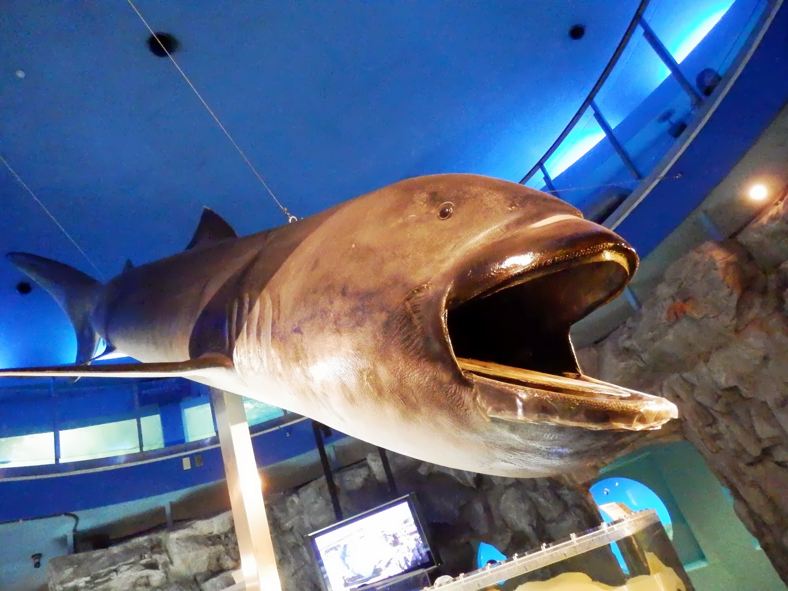 この回遊水槽の真ん中にはメガマウスシャークの剥製があります。