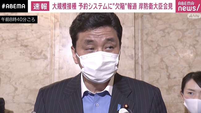 改めて防衛省・自衛隊を代表し、国民の皆さんのお願いを申し上げたいと思う。今回のような不正な手段によってワクチン接種の予約を実施することは、接種を本当に希望する方々の機会を喪失し、貴重なワクチンそのものを無駄にしかねない悪質な行為であり、虚偽予約をしないでいただきたい。なお、今回の問題を受け、例えば市区町村コード等については真正な情報であることが確認できるよう対応可能な範囲でのシステム改修を実施する予定だ」と述べた。(ABEMA NEWS)