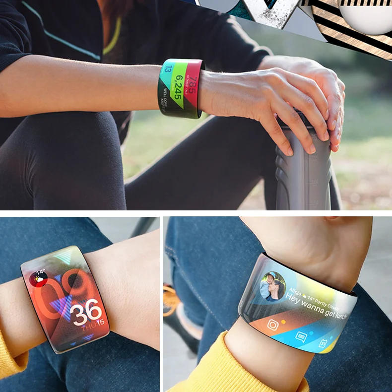 The flexible OLED screen will allow information, interaction and design to flow around the entire device.