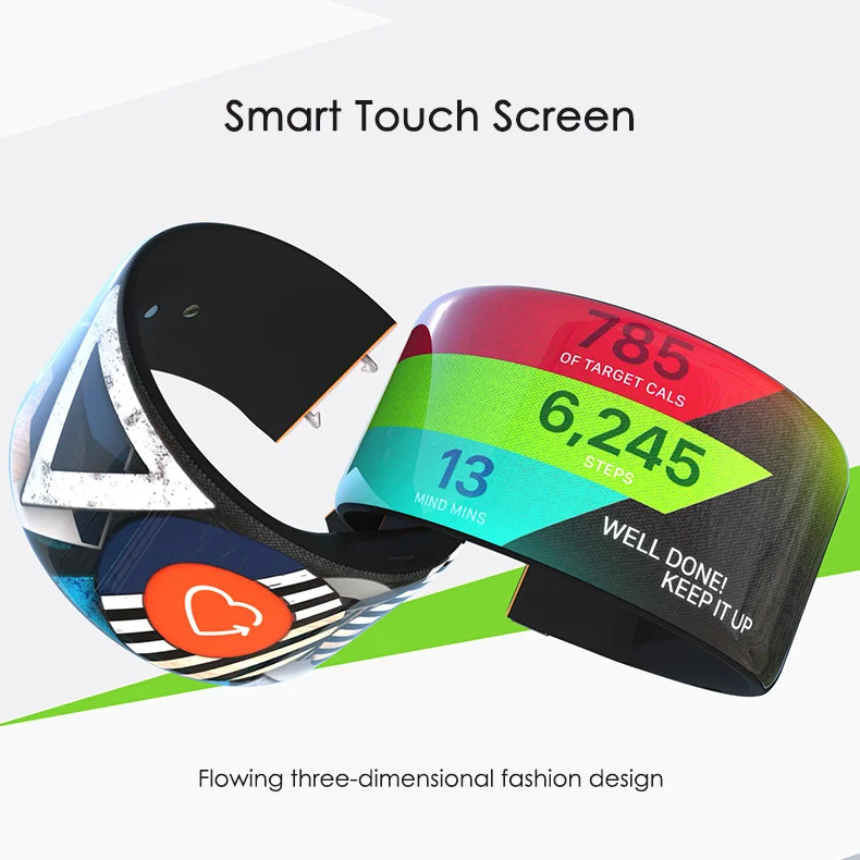 Smart Touch Screen Bracelet: Using OLED flexible screen, seamless connection between the two ends, and flexible OLED screen allows information, interaction and design, to provide a full sense of human-computer interaction around the flow of the entire device. Not only can you switch different dynamic covers every day, it can also find and browse daily information, query and reply emails, social interaction, mobile payment and other functions.