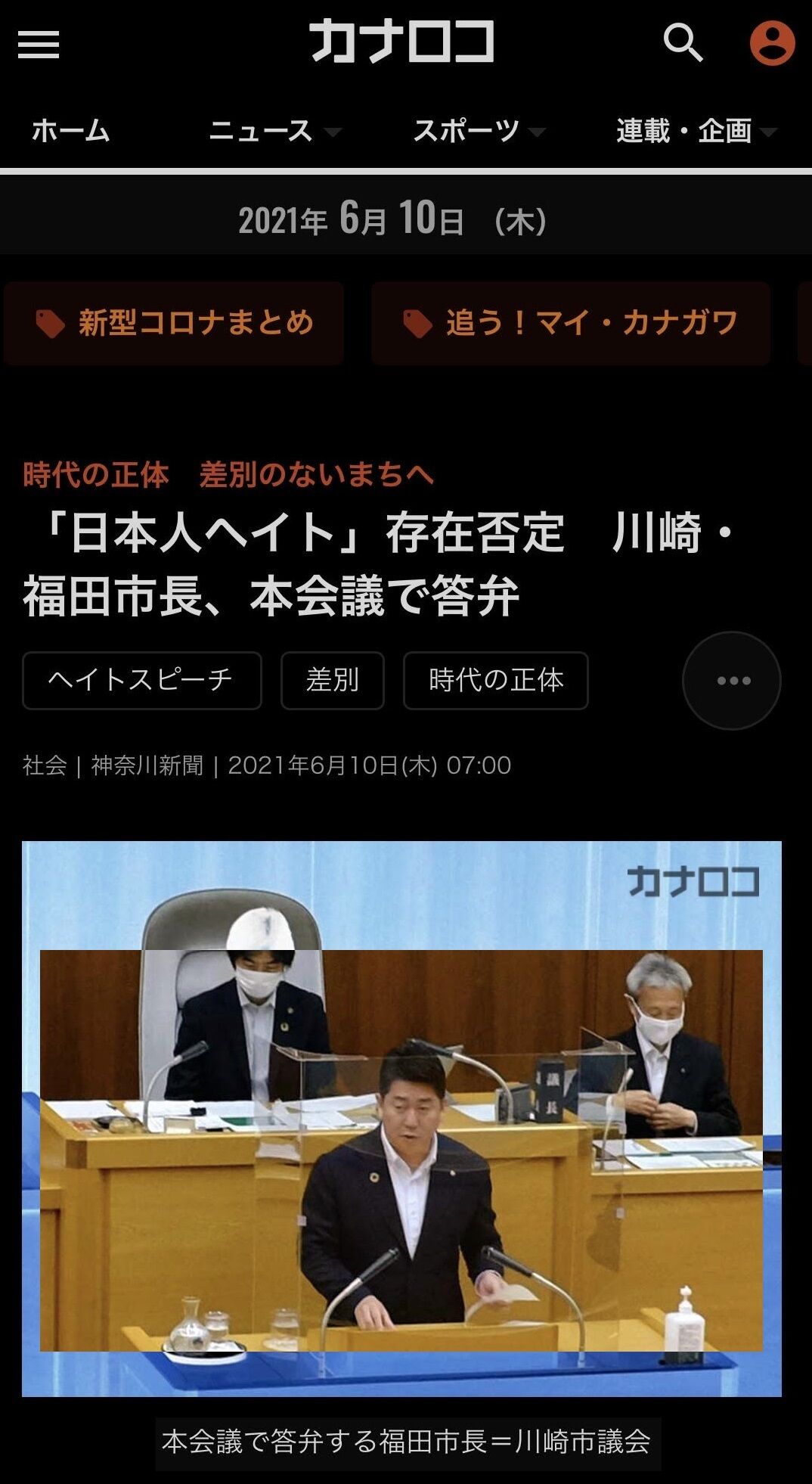 先ごろ、ヘイト規制条例を設ける川崎市議会の本会議にて福田紀彦市長が吉沢直美市議(自民党)からの質疑に答える形で、「日本人ヘイト」に言及した。