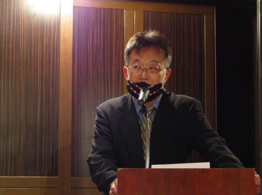 画像:記念講演会にて来場者を前に挨拶する瀬戸弘幸(日本国民党党員・九十九晃氏が撮影・提供)