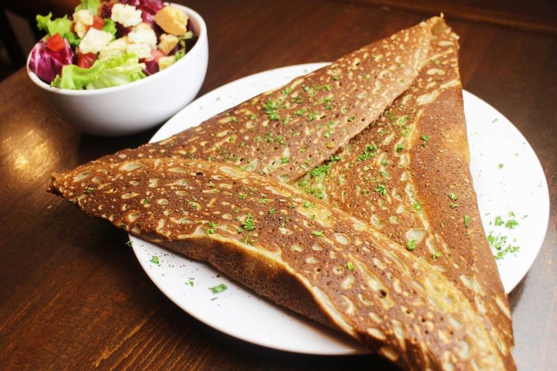 ブルターニュ地方の郷土料理で、そば粉を使用した生地をカリカリに焼き上げ、お肉や野菜・卵などをトッピングしたものとなっています。