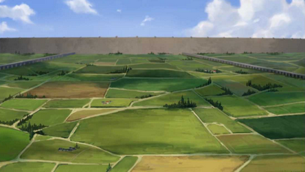Ba Sing Se's greatest secret to its staying a power in the war was the farmlands of the Agrarian Zone behind the Outer Wall.[1] These fields supply the entire city with food to enable them to survive a siege for any duration, so long as the Outer Wall remains intact and, due to earthbending, can be quickly repaired. It was apparently breached during Iroh's siege, however, the city survived, as the siege broke shortly thereafter.[23] A small fraction of food in Ba Sing Se comes from the butcher shops within the city.