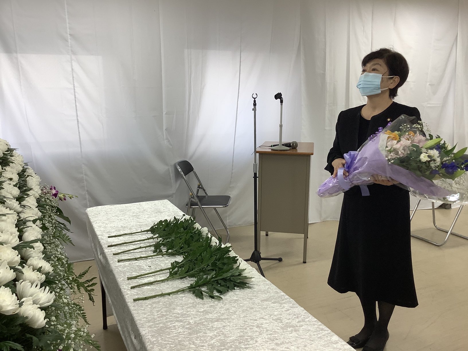 供花ならまだわかるが…それにしても花束で供花はちょっと…。